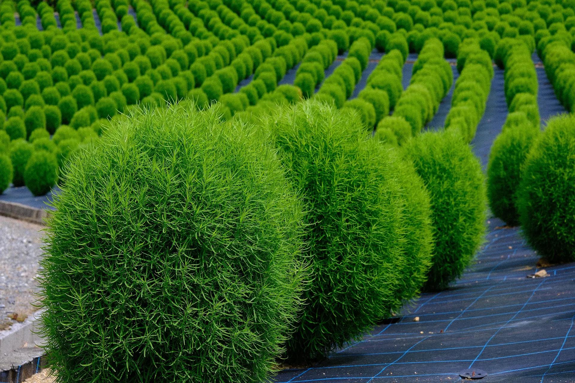 志摩市観光農園では、ひまわり畑と一緒にコキアも楽しむことができます。コキアは10月頃から真っ赤に染まり始めますが、夏の時期の緑のコキアも可愛いですよ🌳🌳🌳
