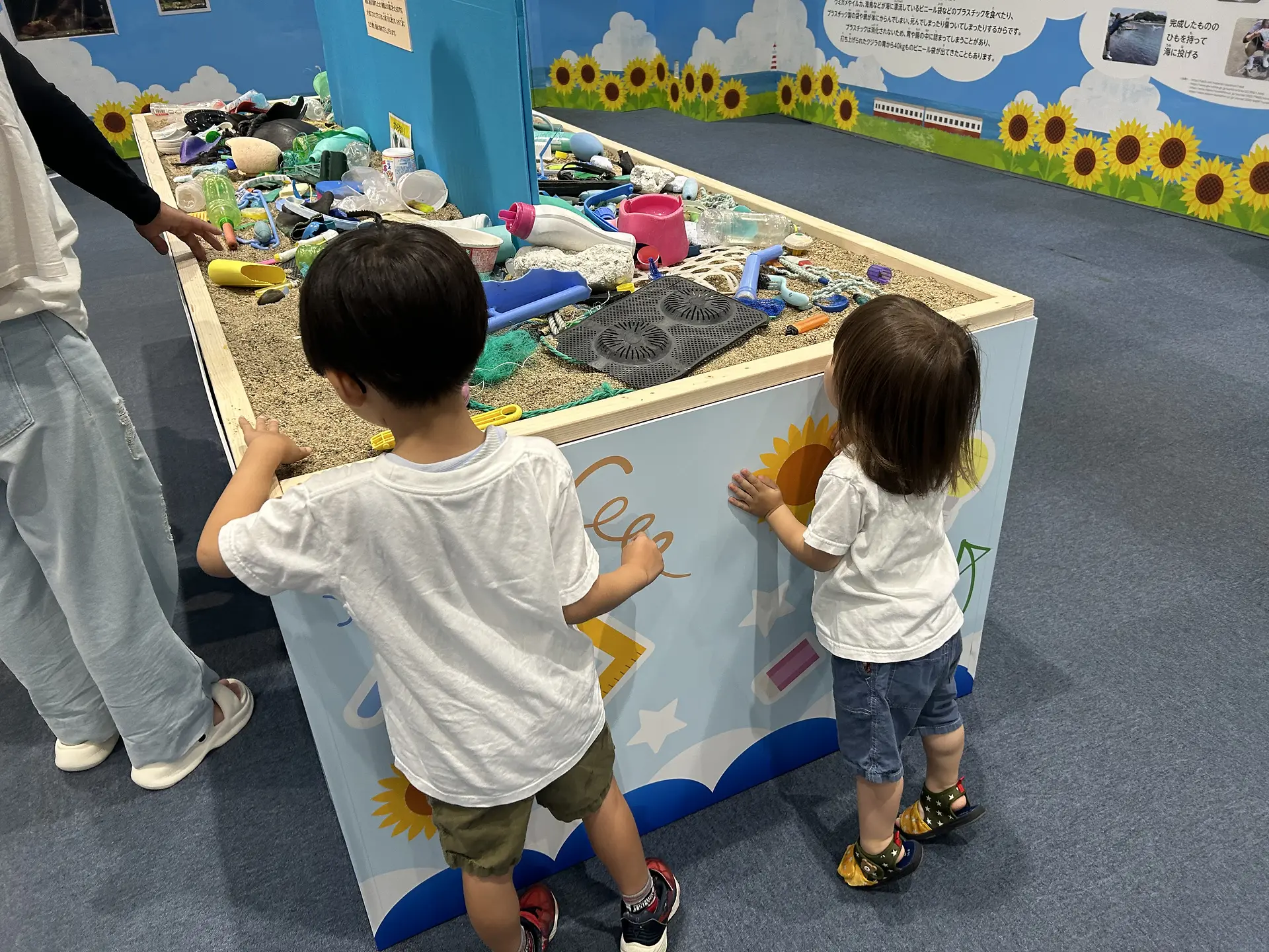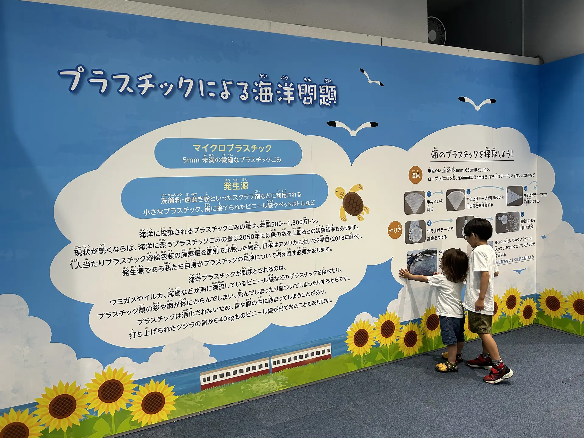 こちらでは、実際に海辺で拾ったプラスチックゴミを利用した「プラゴミアート」も展示されています。
