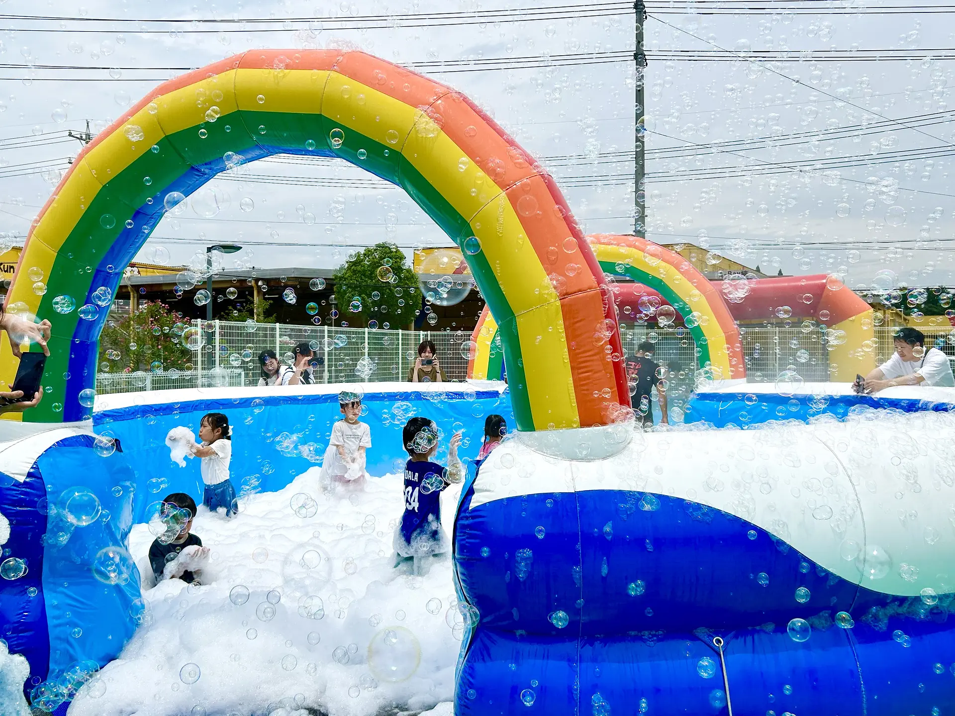 屋外のプールでは昨年大好評だった「泡あわ噴水ウォーターショー」を今年も開催!楽しさはもちろん、びしょ濡れ具合も昨年よりパワーアップしています!