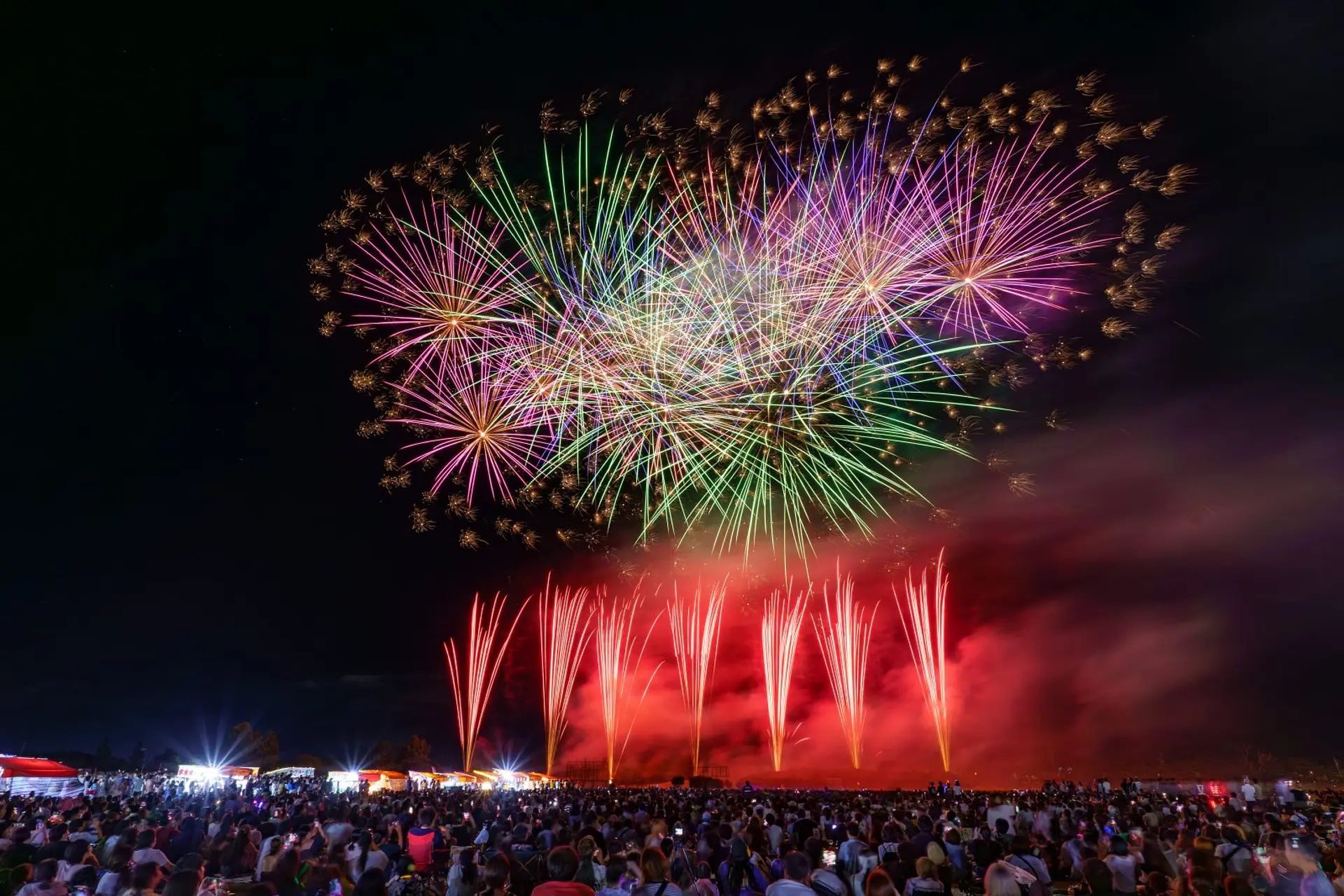 約3300発が夜空を飾り、毎年恒例のナイアガラ花火に続いて、金大瀑布のフィナーレは息を呑む美しさです。