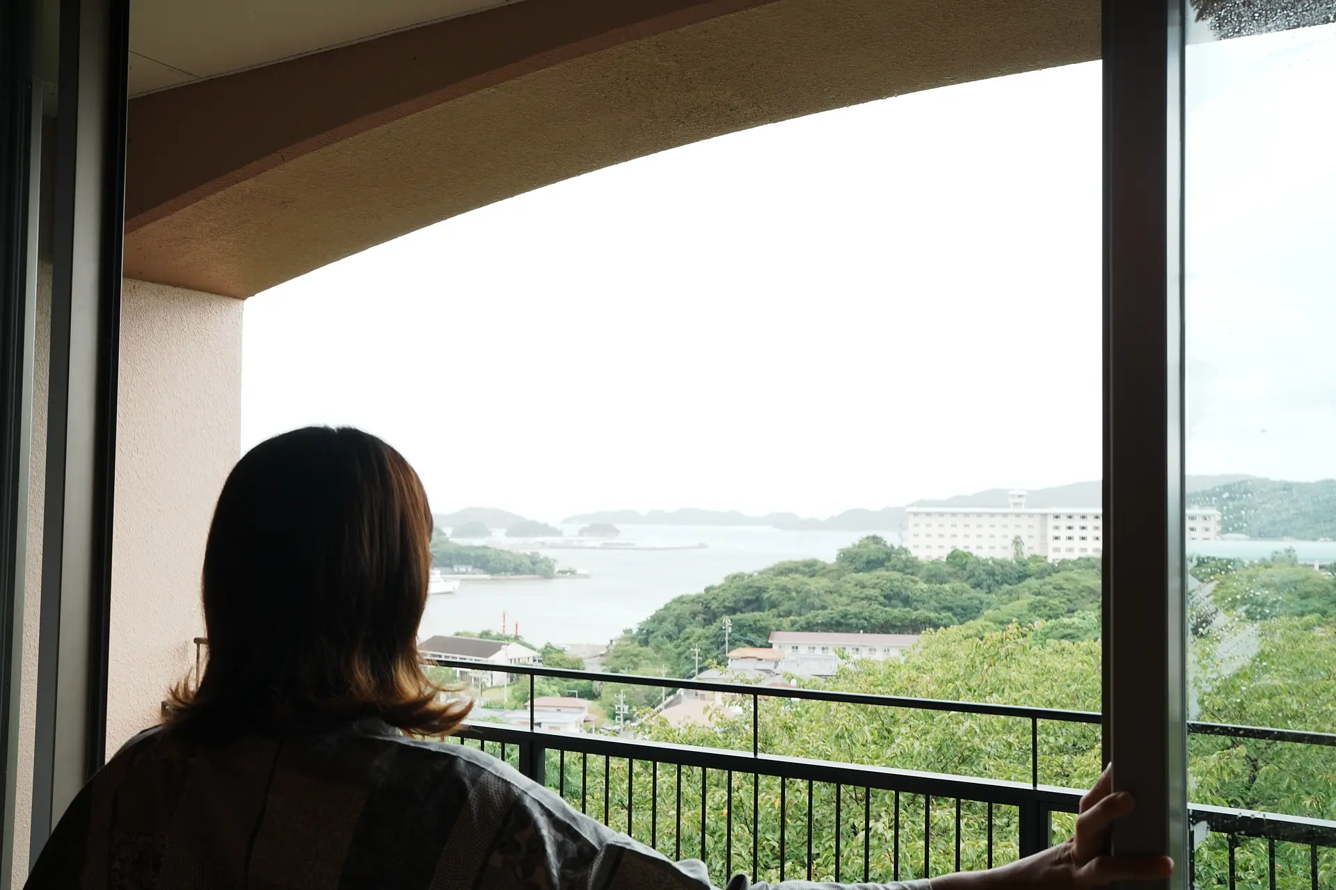 部屋から眺める鳥羽湾は、とても美しく、心静まるひとときです。