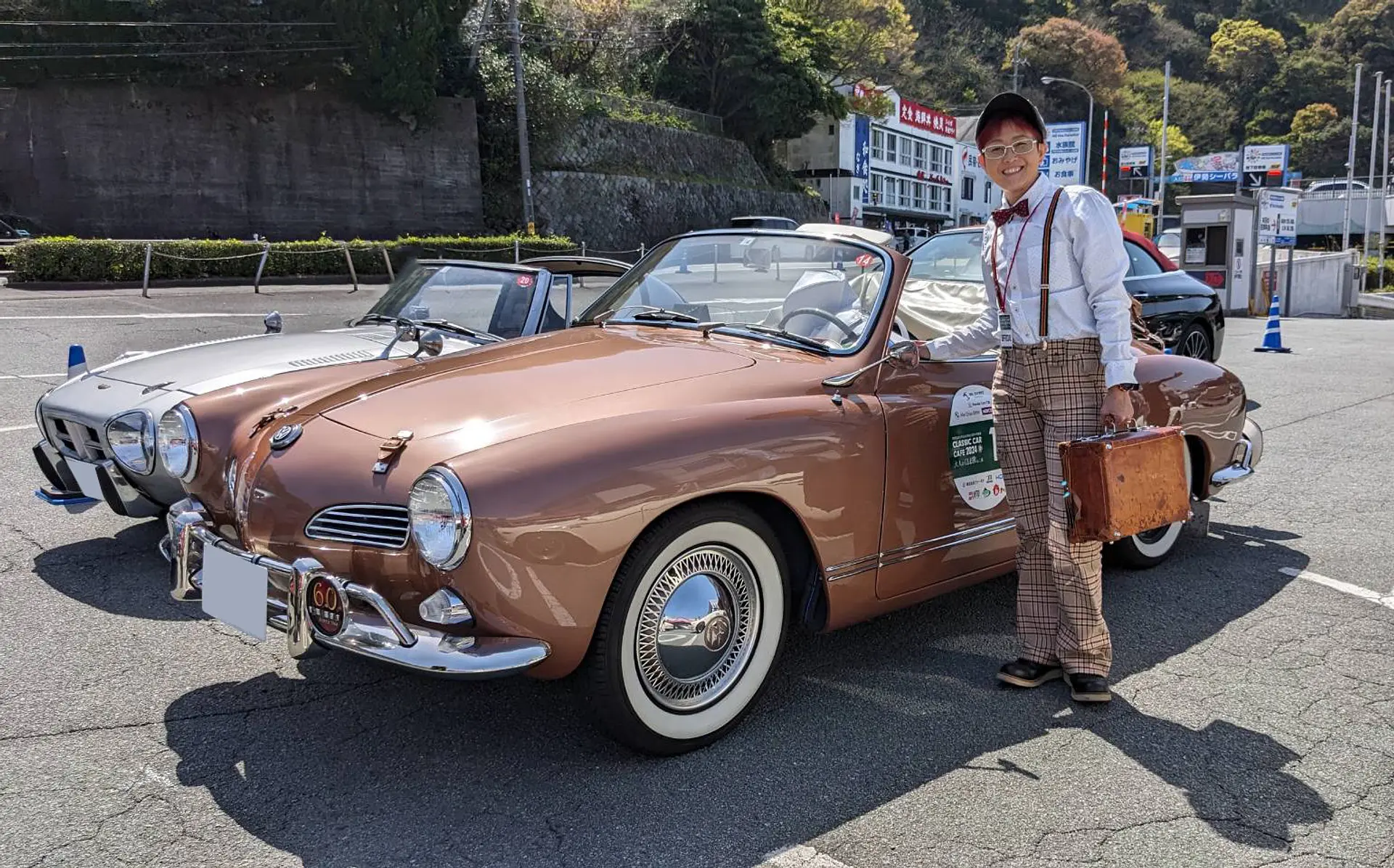 クラシックカーカフェ「大人のくるま旅 in 三重」は、春にも開催され、私も「ベンツC-180 ガブリオレ」をお借りし、ラリーに参加しました。ルートブック(コマ図表記)に従って、チェックポイントを巡りながらゴールを目指すのが、通常のドライブとは違ってワクワク感があります!あちこちのチェックポイントで「あつさーん!」と声援をくださる方がいたり、手を振ってくれる人がいてとても嬉しかったです!街中で「クラシックカーカフェ」のゼッケンをつけたクラシックカーを見かけたら、ぜひ手を振って応援してくださいね!