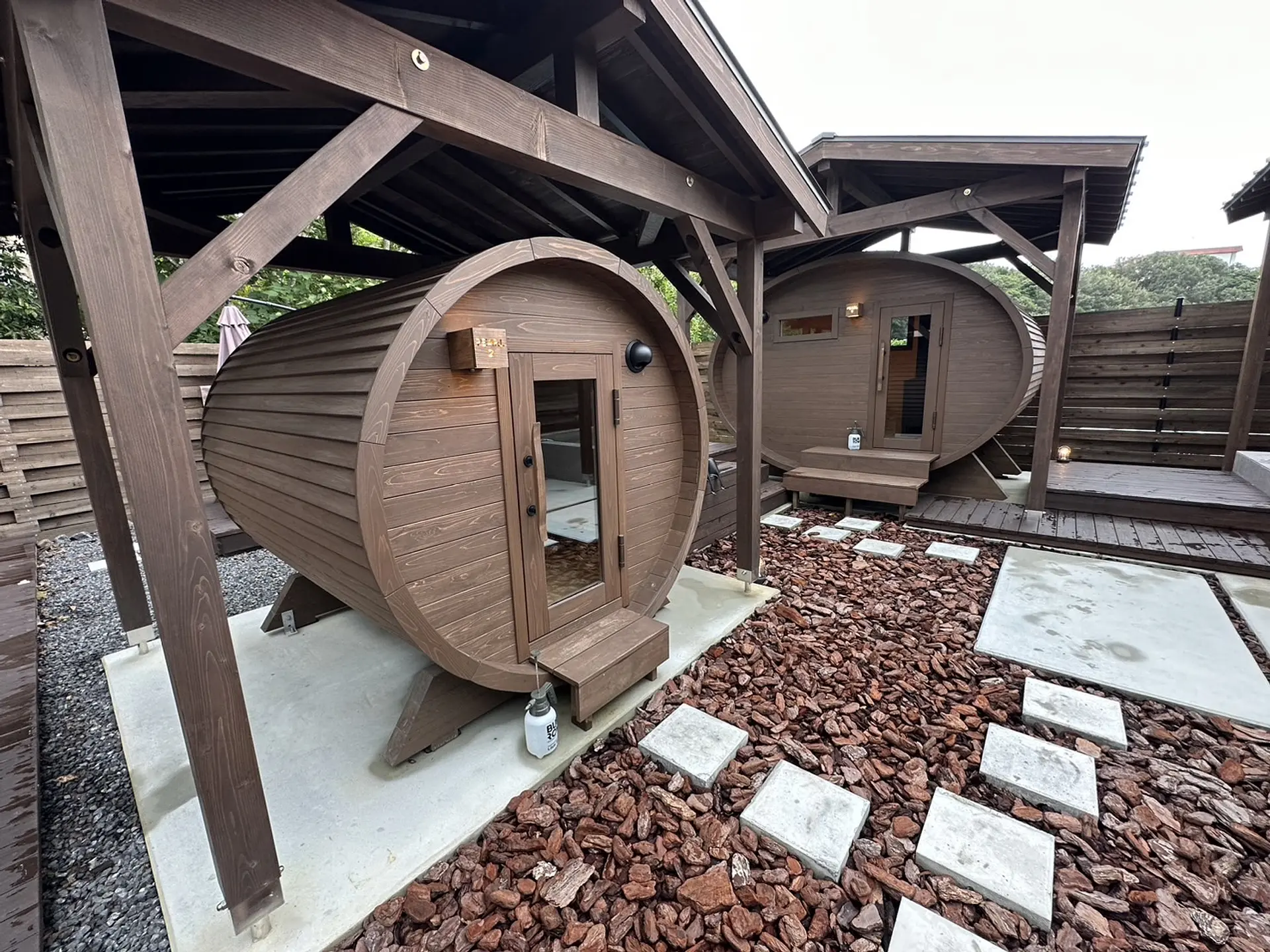 バレルサウナとは、サウナの発祥地であるフィンランドに伝わる伝統的なサウナだそう。「バレル」とは、樽の形のこと。ロウリュ時の熱が効率的に循環し、室内の温度が均一に保たれ、快適にサウナが楽しめる構造です。