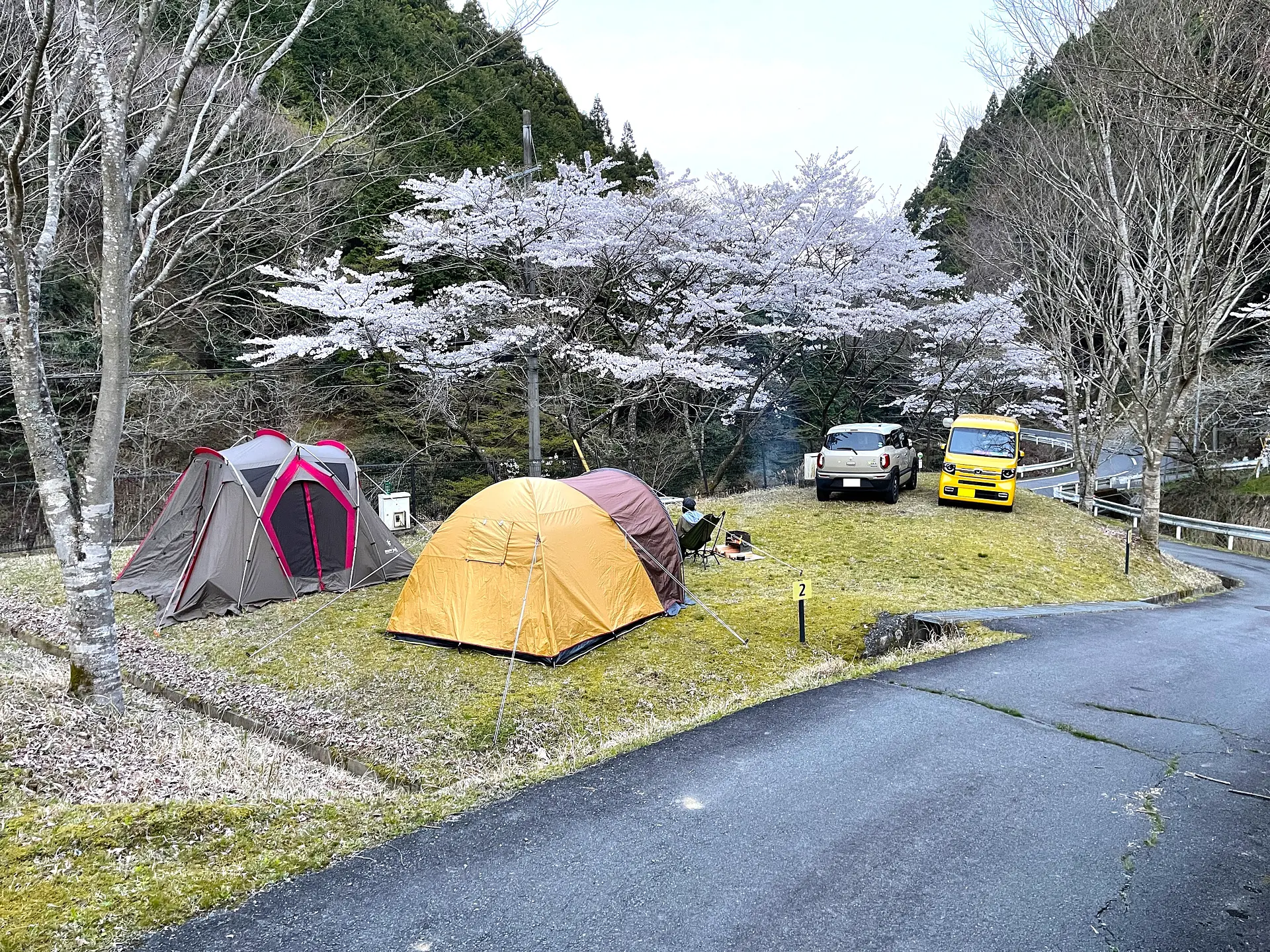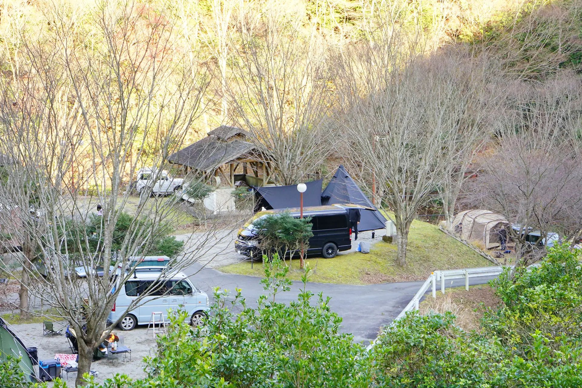 管理棟から車で3~4分移動した場所にはオートキャンプサイトが15区画あります!ここは、春には桜キャンプ、夏はすぐ近くの清流で水遊び、秋には紅葉キャンプ、冬は星空キャンプと四季折々の自然を満喫できますよ!