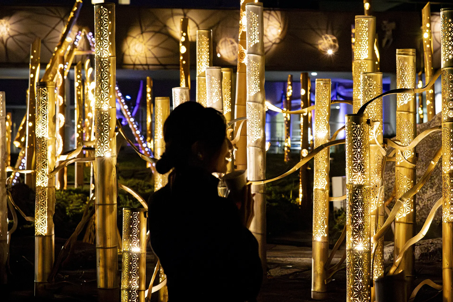 2024年で8回目を迎えるこのイベント。今年は三重県総合文化センター開館30周年の節目の年ということで、30周年アニバーサリーバージョンとなっています。今年のテーマは「花」をメインモチーフに、そうぶんが祝祭ムードに包まれていました。誰もが自分らしくいられる、歓びに満ちた美しい世界。そんな世界を竹あかりで表現されています。