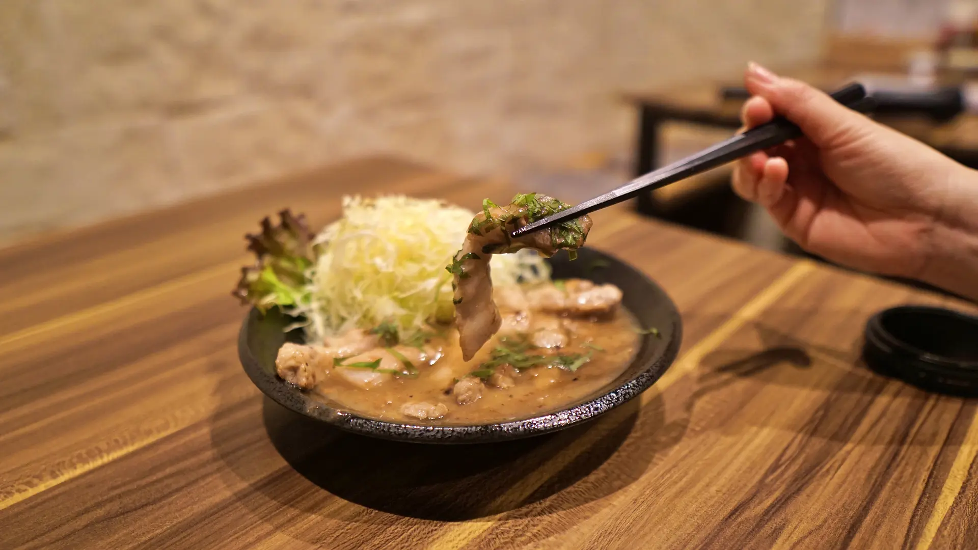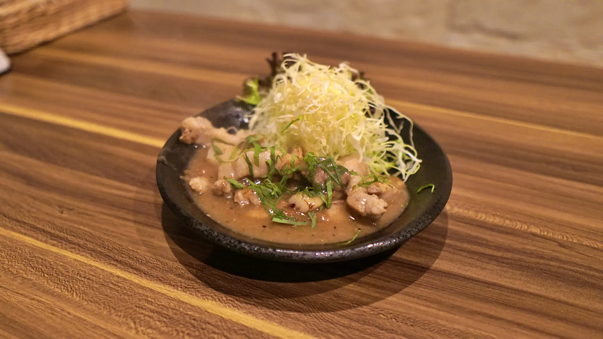 トンテキと聞くとがっつり系の黒いタレを想像しますが、梅しそトンテキのタレは黒く無く、お肉から出る脂を活かした梅が香るトンテキです。めちゃくちゃサッパリしていて、お肉の味がしっかりと楽しめるトンテキで、女性も遠慮なく食べられる、そんなトンテキに仕上がっています!このトンテキにも大将の拘りが詰まっていて...