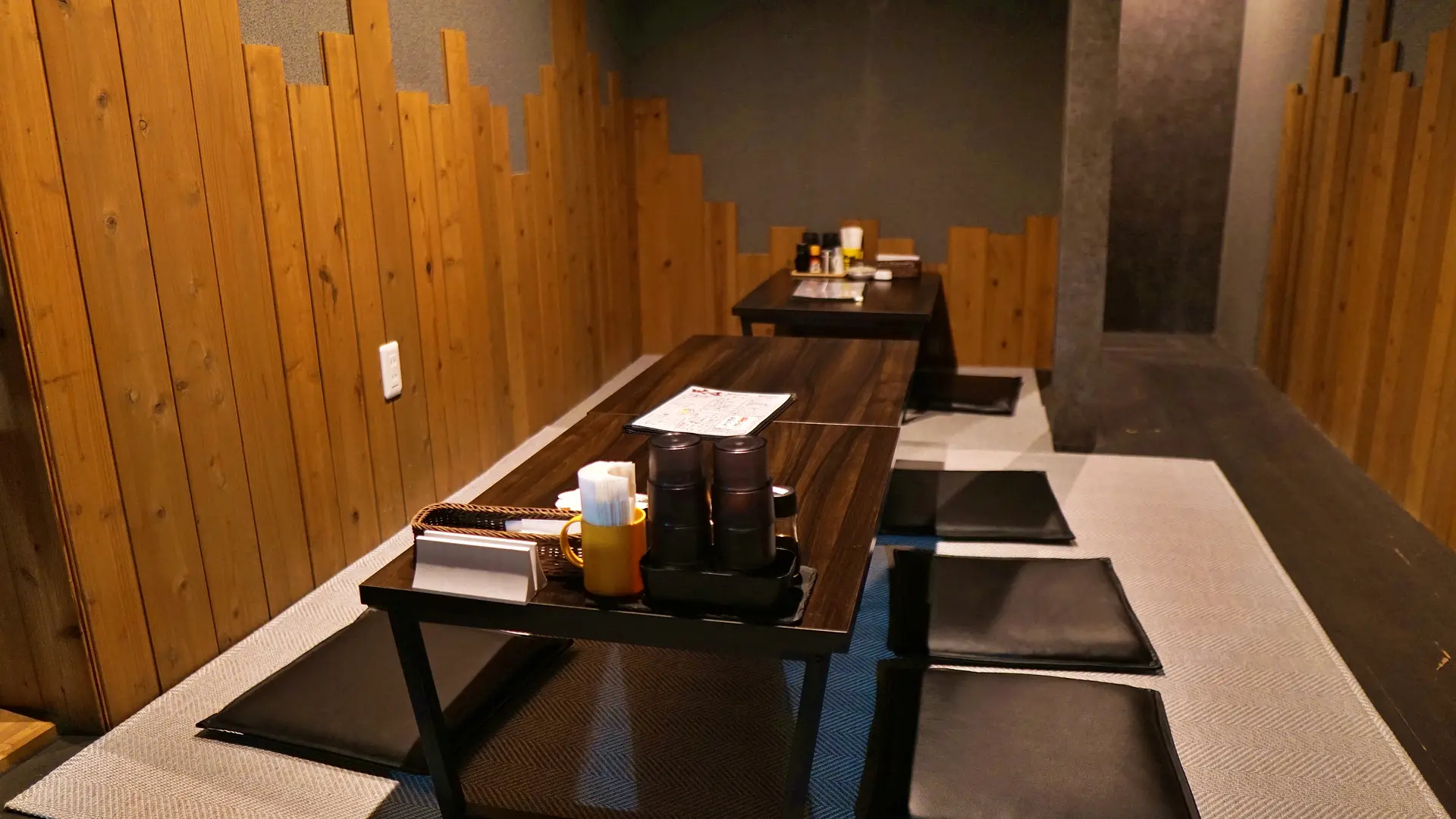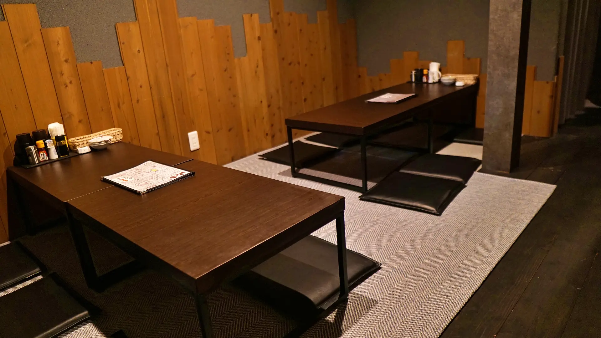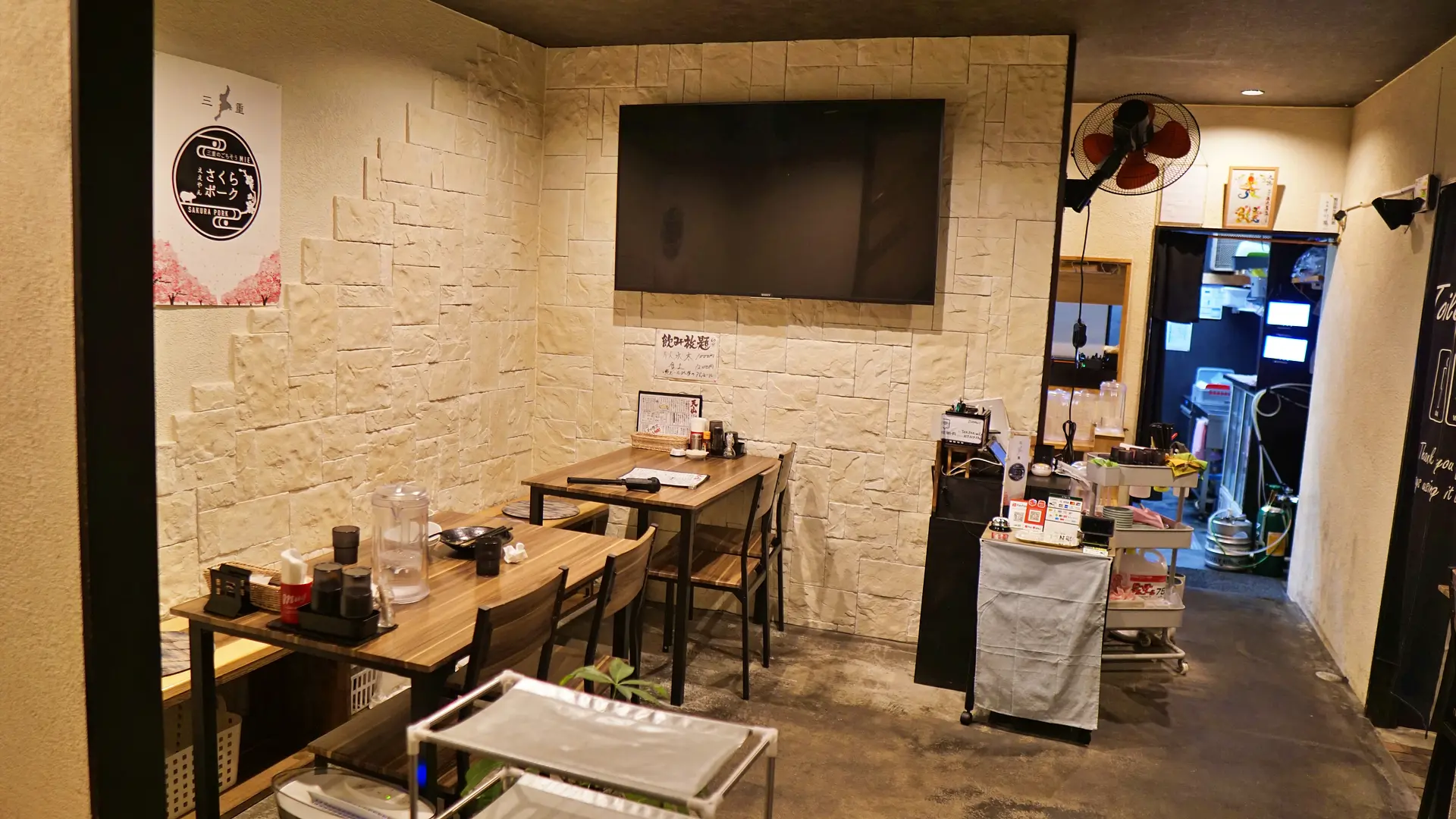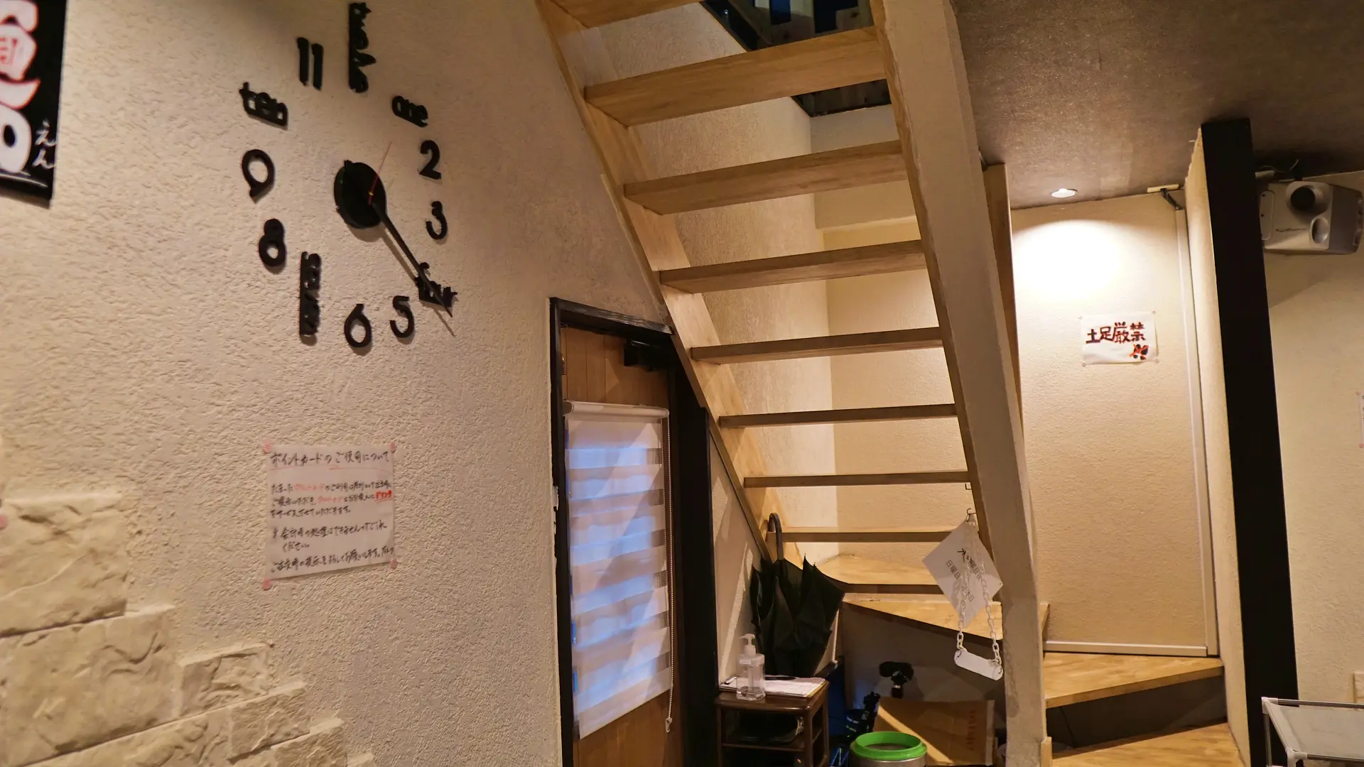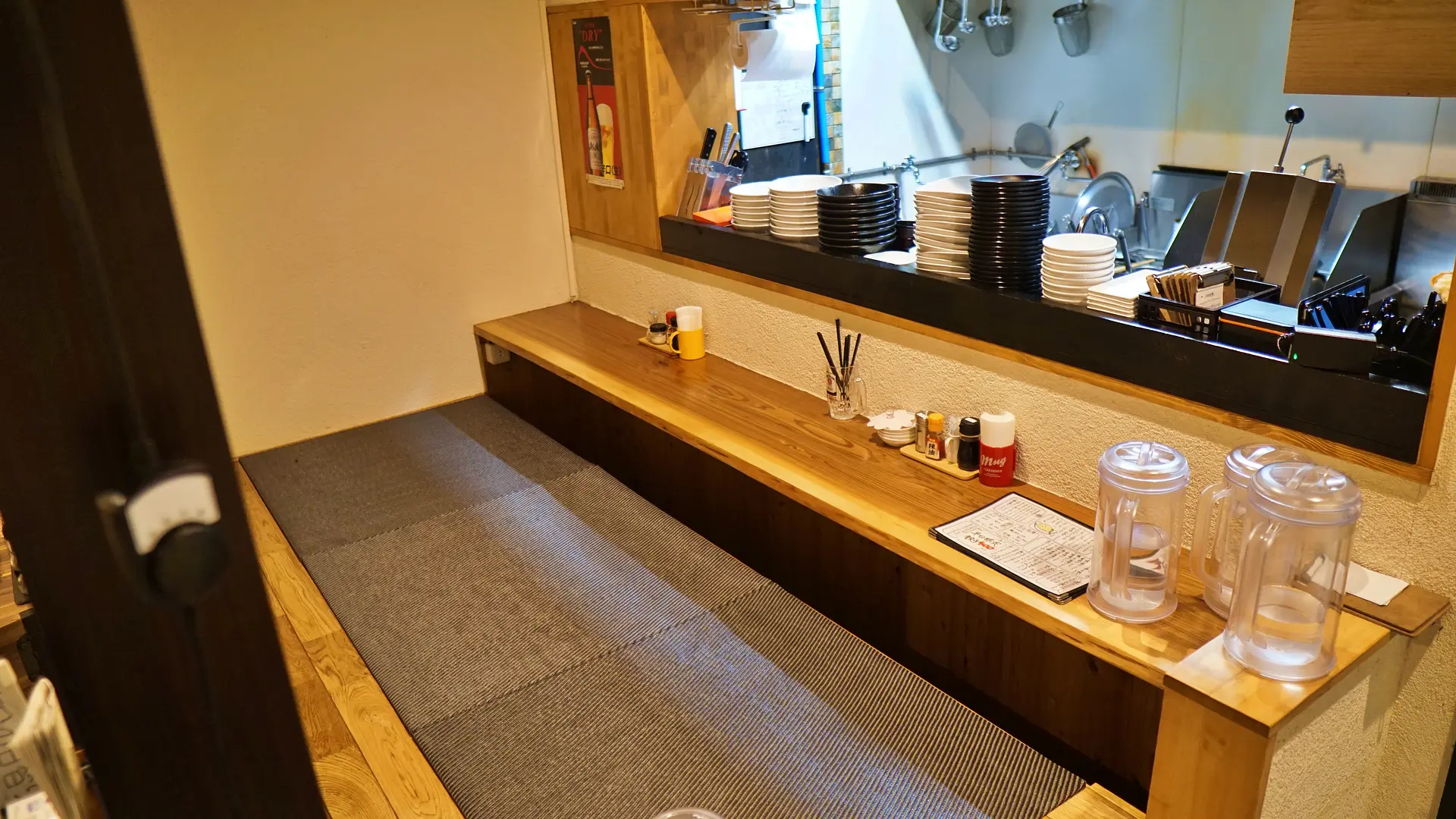 1階は4人テーブル×4席、2人テーブル×1席、カウンター4名の計22名、2階は座敷で計16名の合計38名が利用できる店舗の広さ。