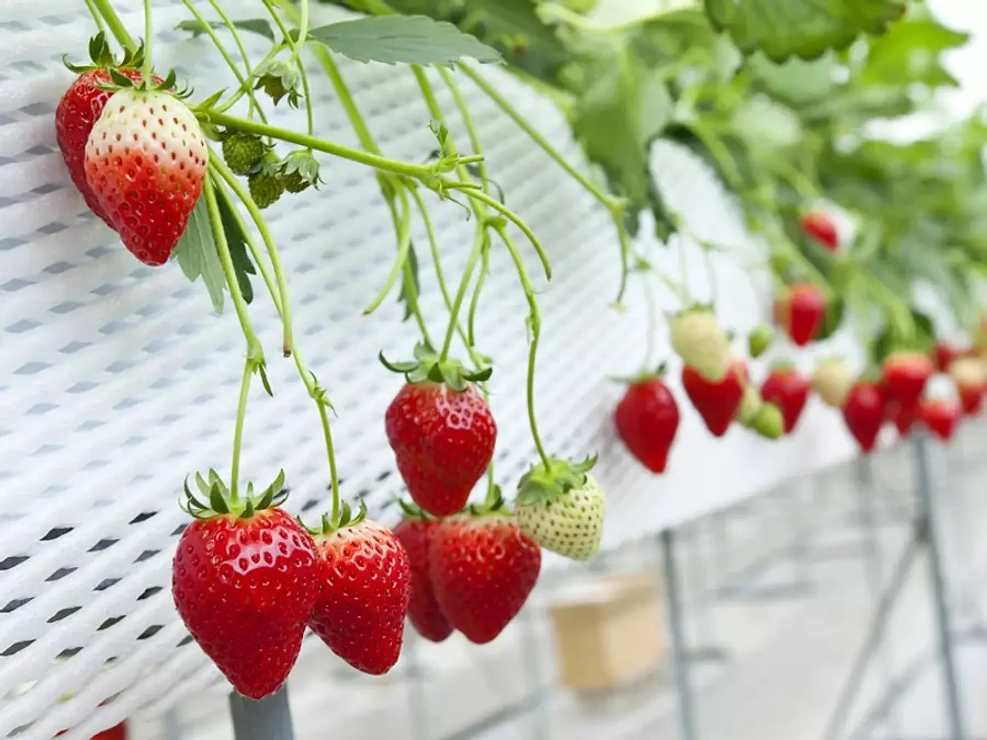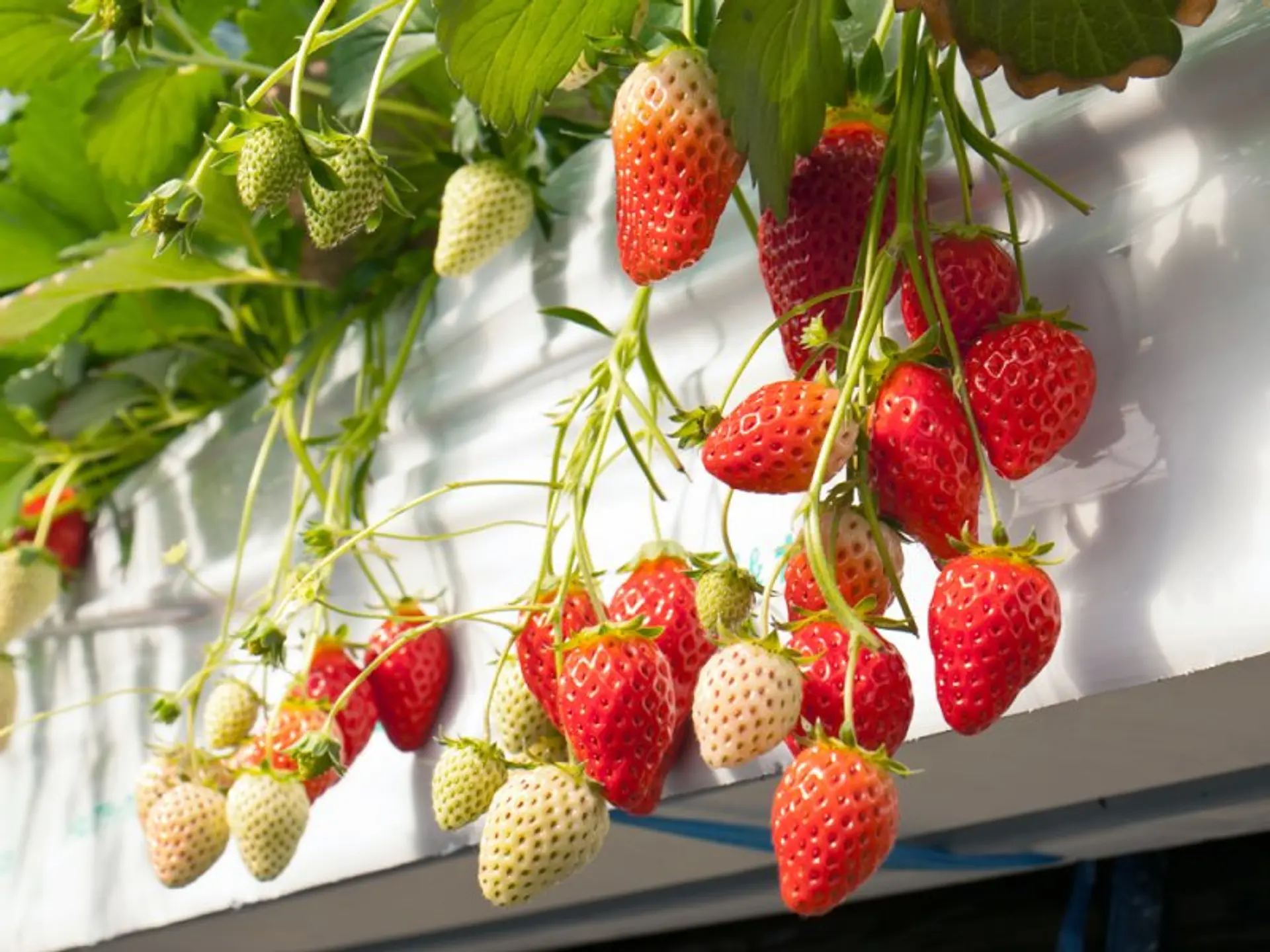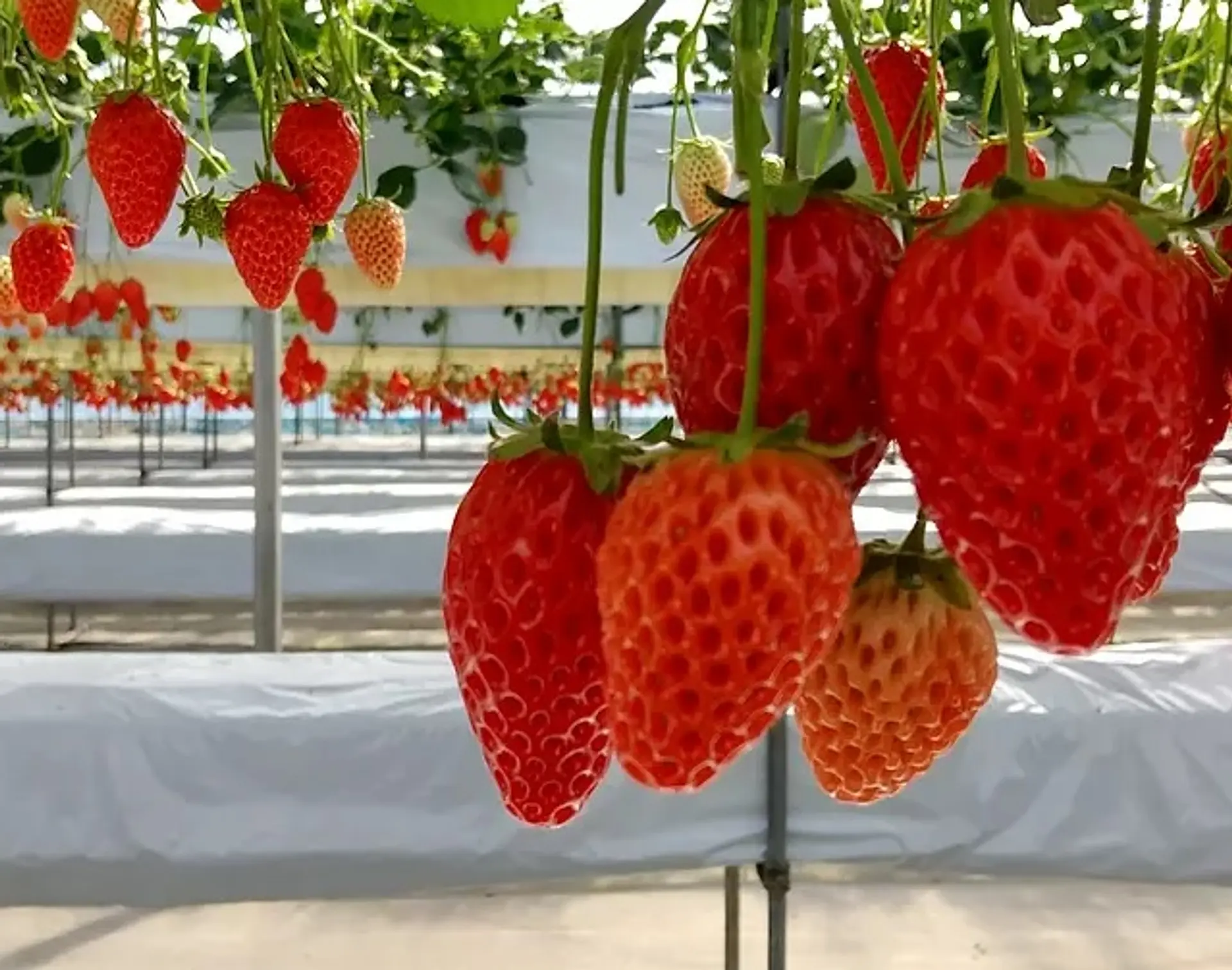 高設式養液栽培で育てられた清潔なイチゴは、甘みも多く地元でも人気を集めています。雨の心配も要りません。トイレ、水道完備でどなたでも安心して楽しんでいただけます。