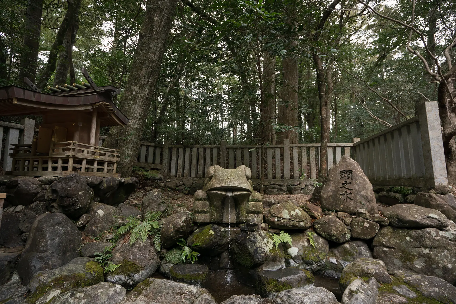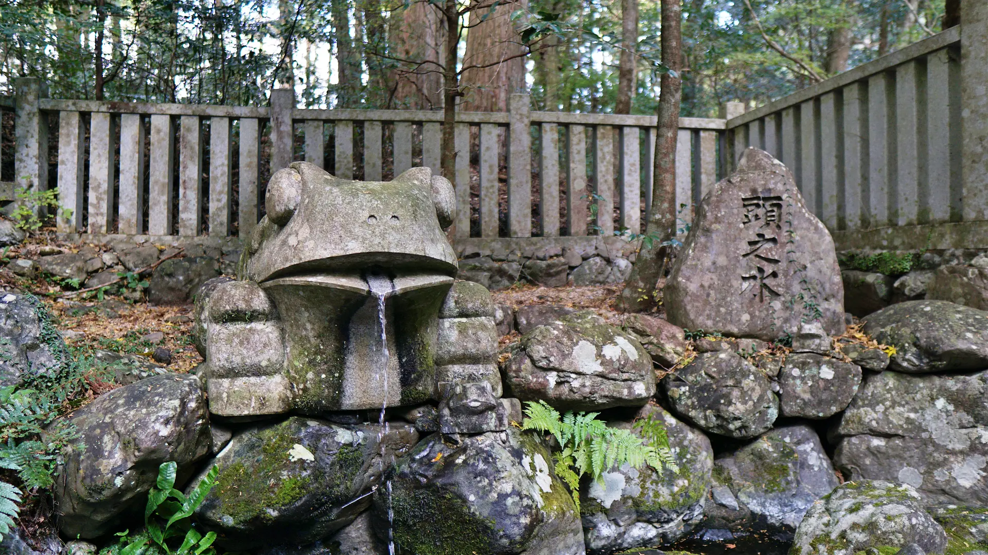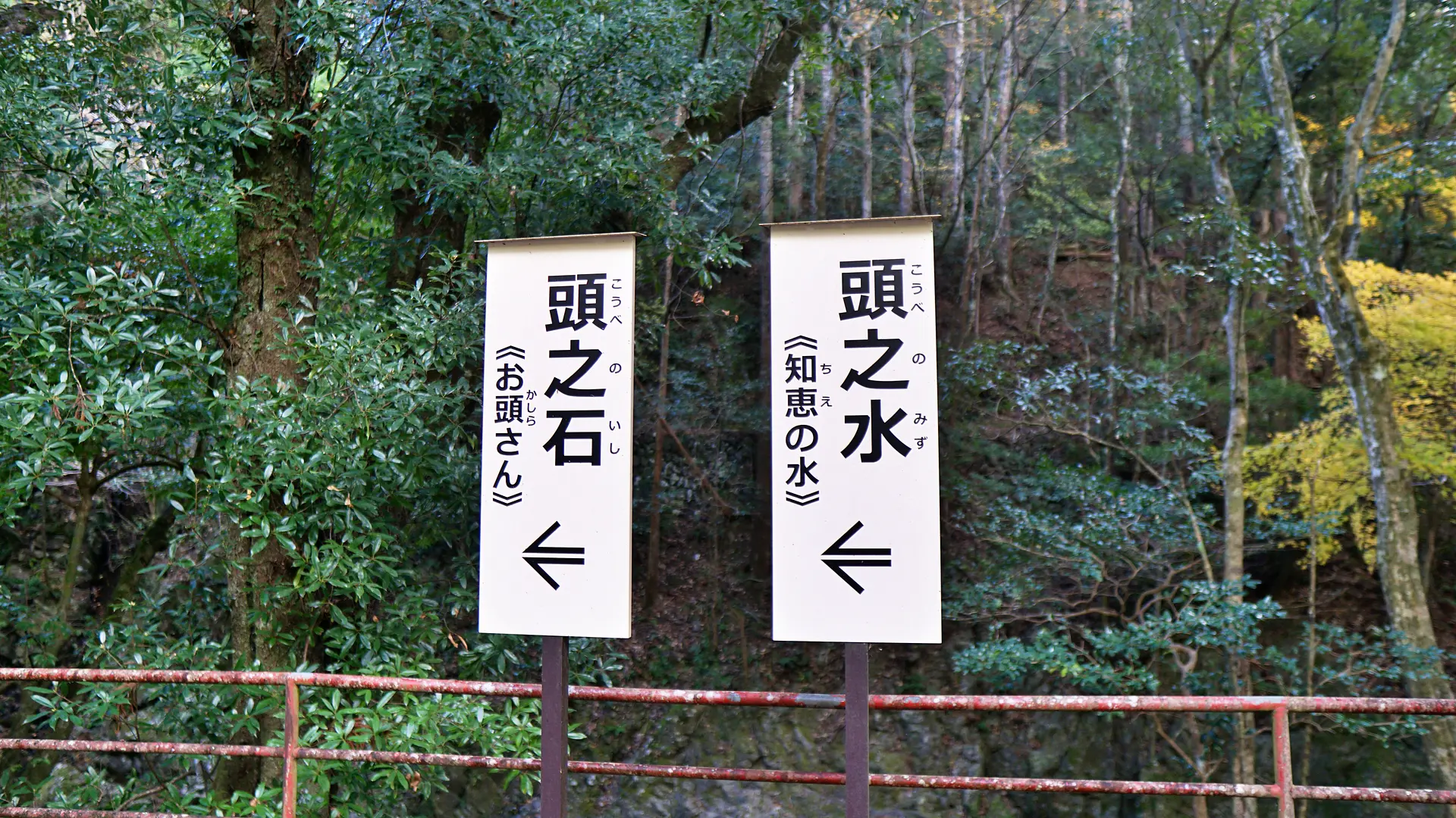 拝殿の脇には、唐子川へ続く道があり、そこには「おかしらさん」と呼ばれる頭之石と「知恵の水」と呼ばれる頭之水があります。