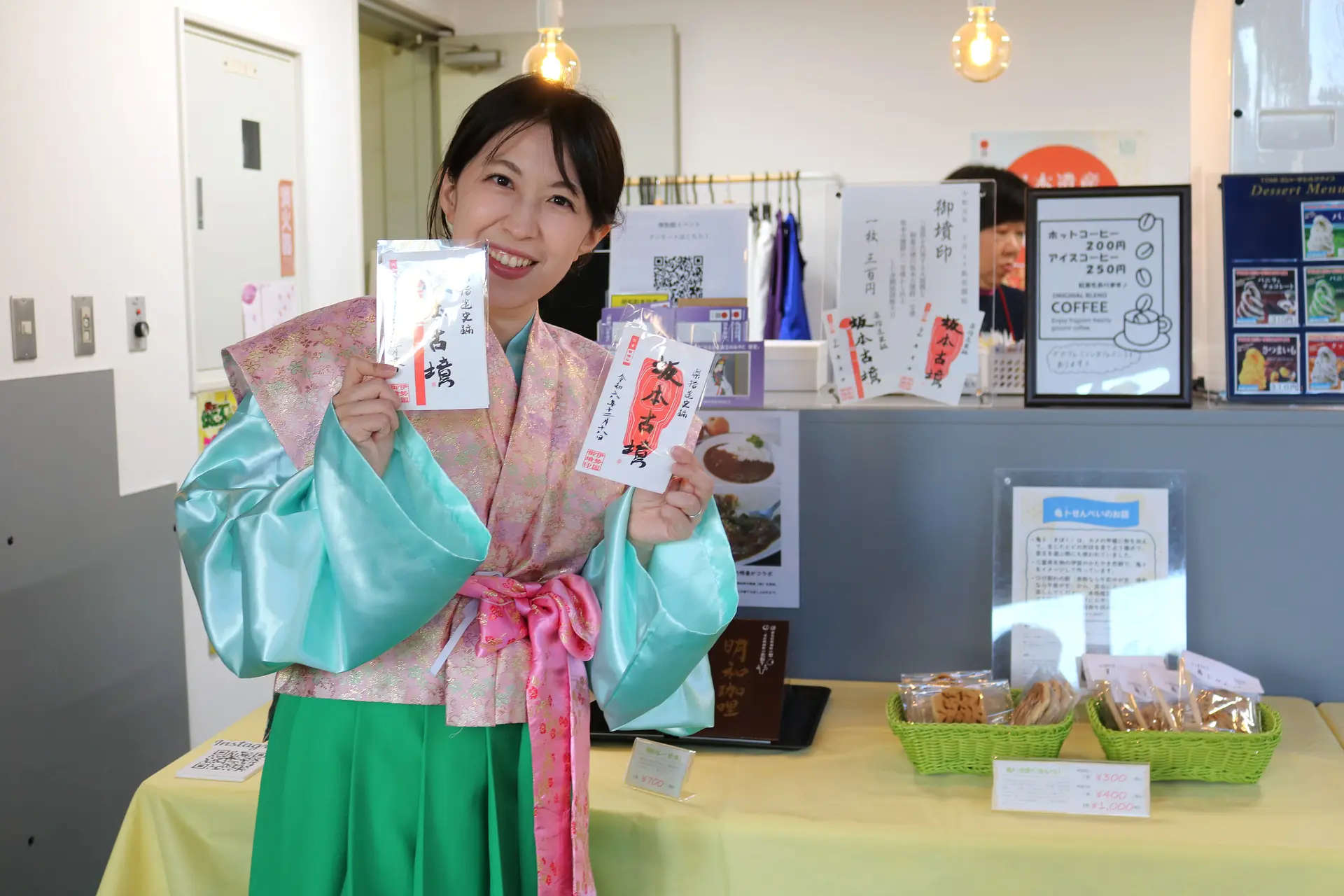こちらの御墳印は通常一枚300円で購入できるのですが、体験参加者にはどちらか好きな方を一枚プレゼントしていただけます。
