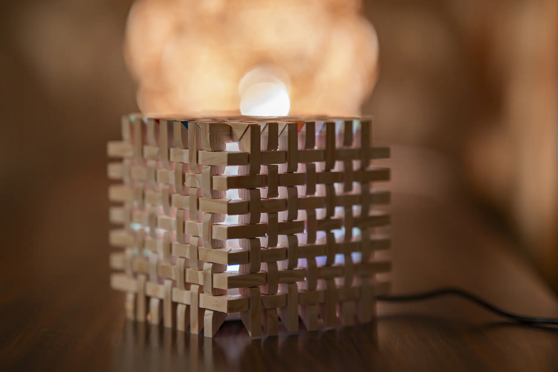 体験するのは、三重県産のヒノキで作られた11cm角の五面体「木漏れ灯(こもれび)」と名付けられた行灯づくり。ねじり組子という模様で、木が網目のように組み上げられています。この作品は、三重県が開催する「みえの木製品コンテスト2023」の家具・インテリア部門で優秀賞を獲得。そんな素敵な作品は、どうやって作られているのでしょうか。