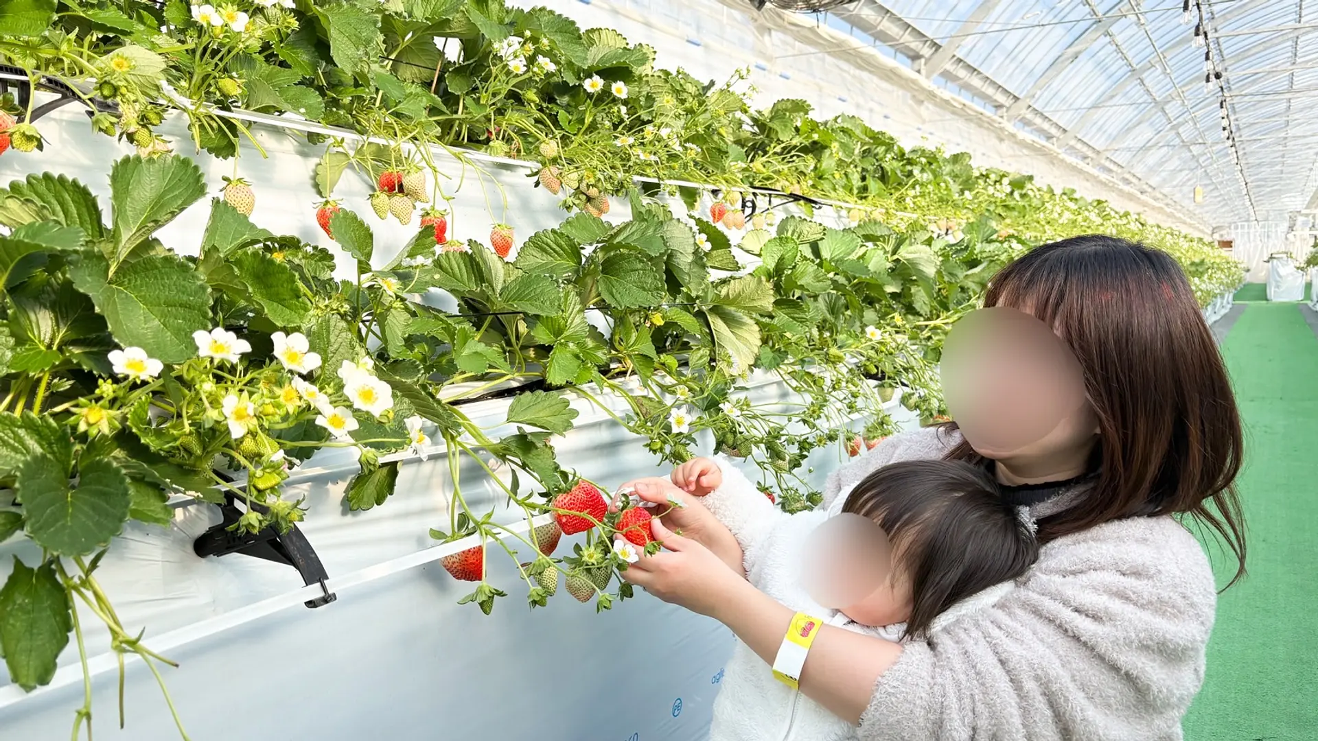 ここなら最長3時間滞在することができるので、普段とは違いママも満腹になるまでいちご狩りを楽しむことができますよ♪