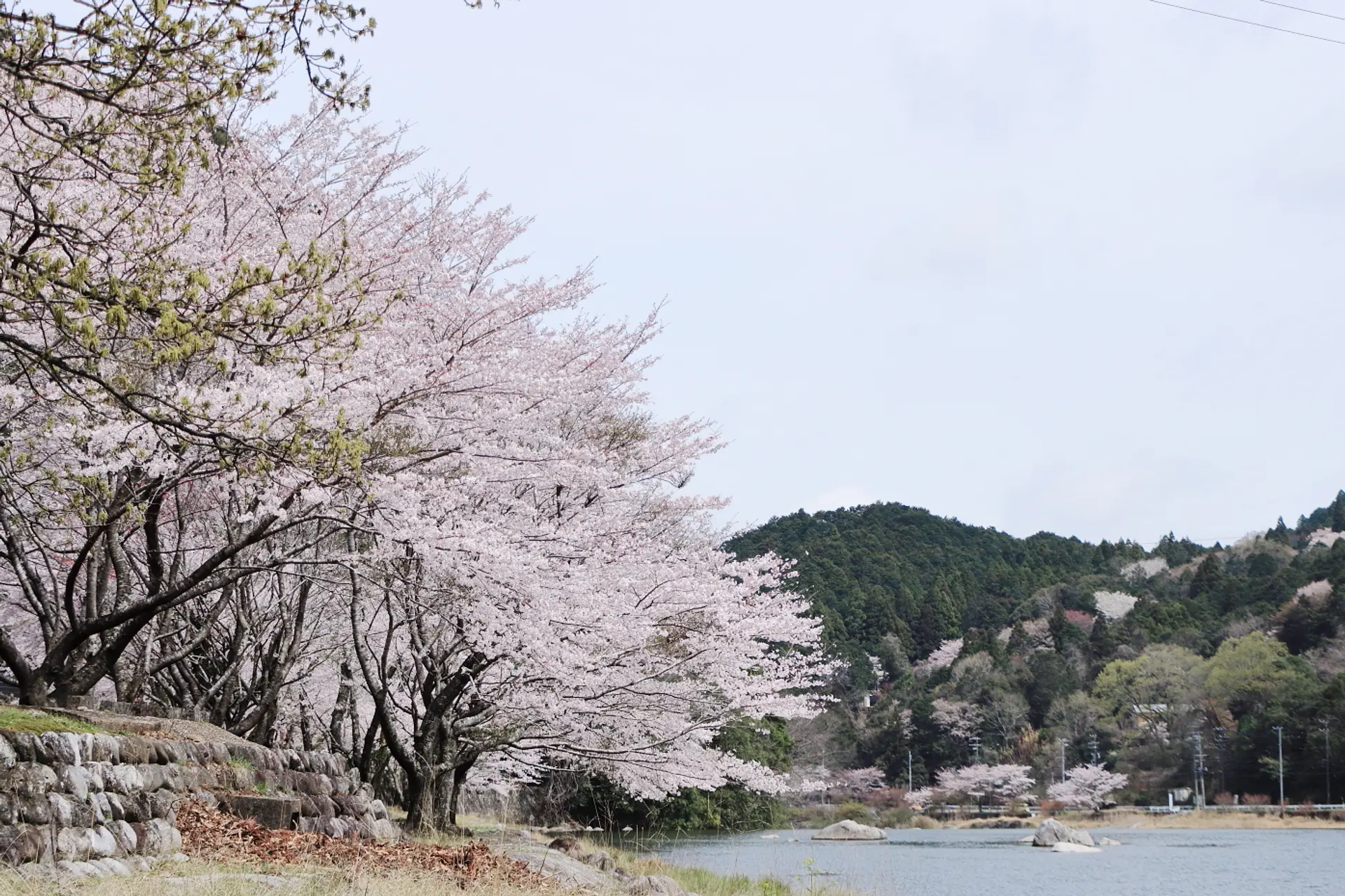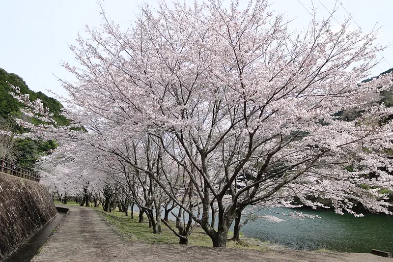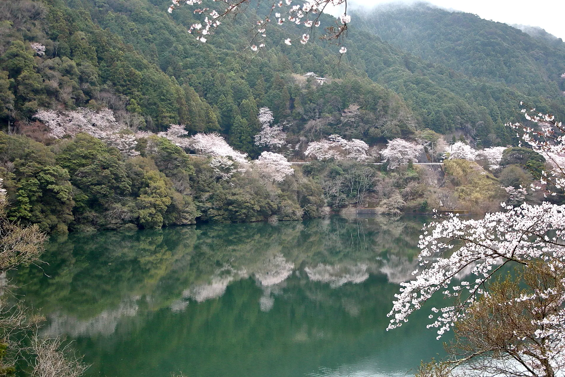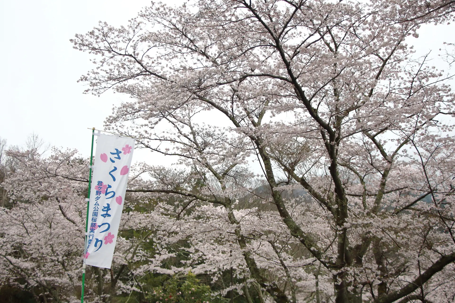 1500本とも云われる桜を、高範囲にわたるダム湖の美しい景色とともに楽しめるスポットです。