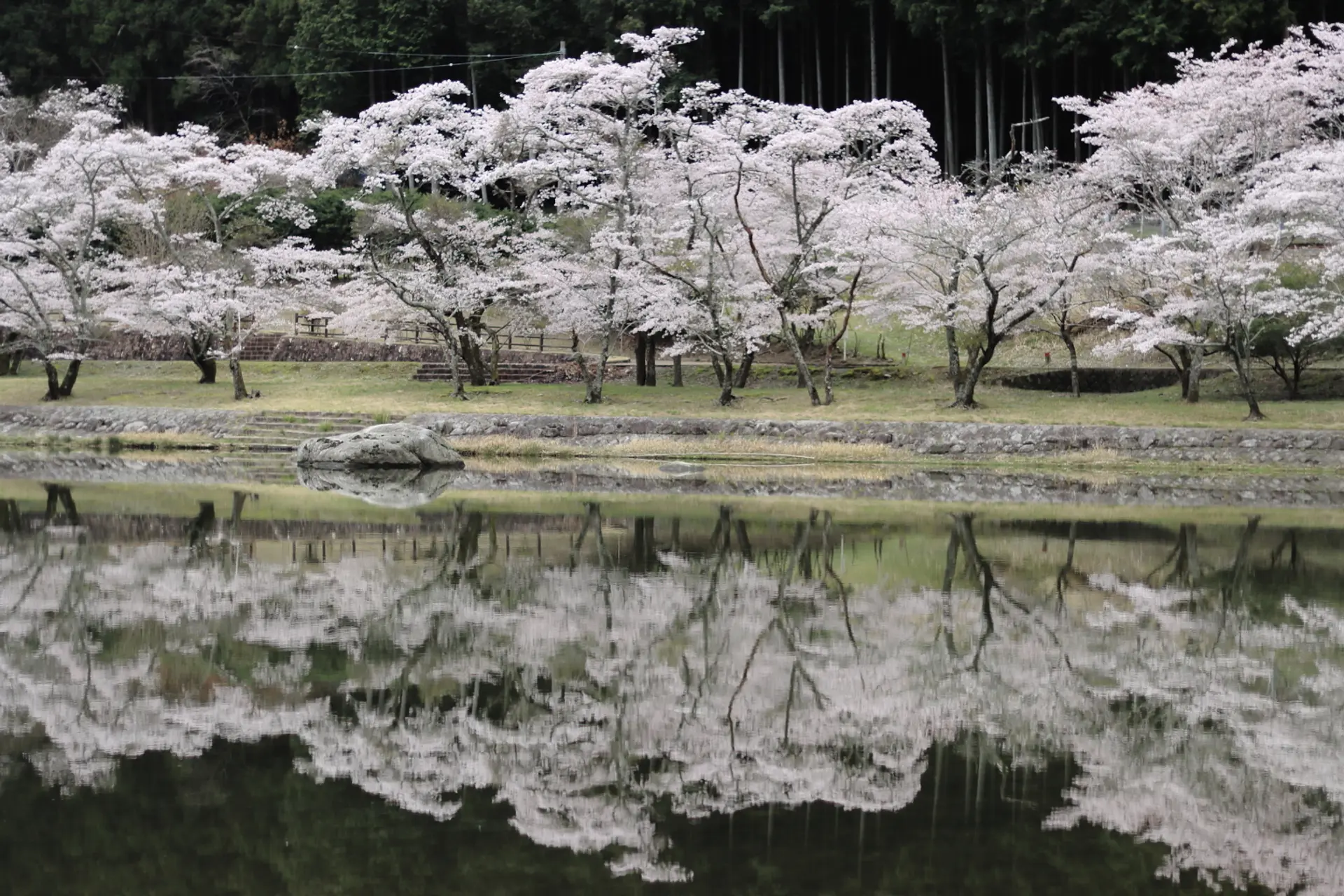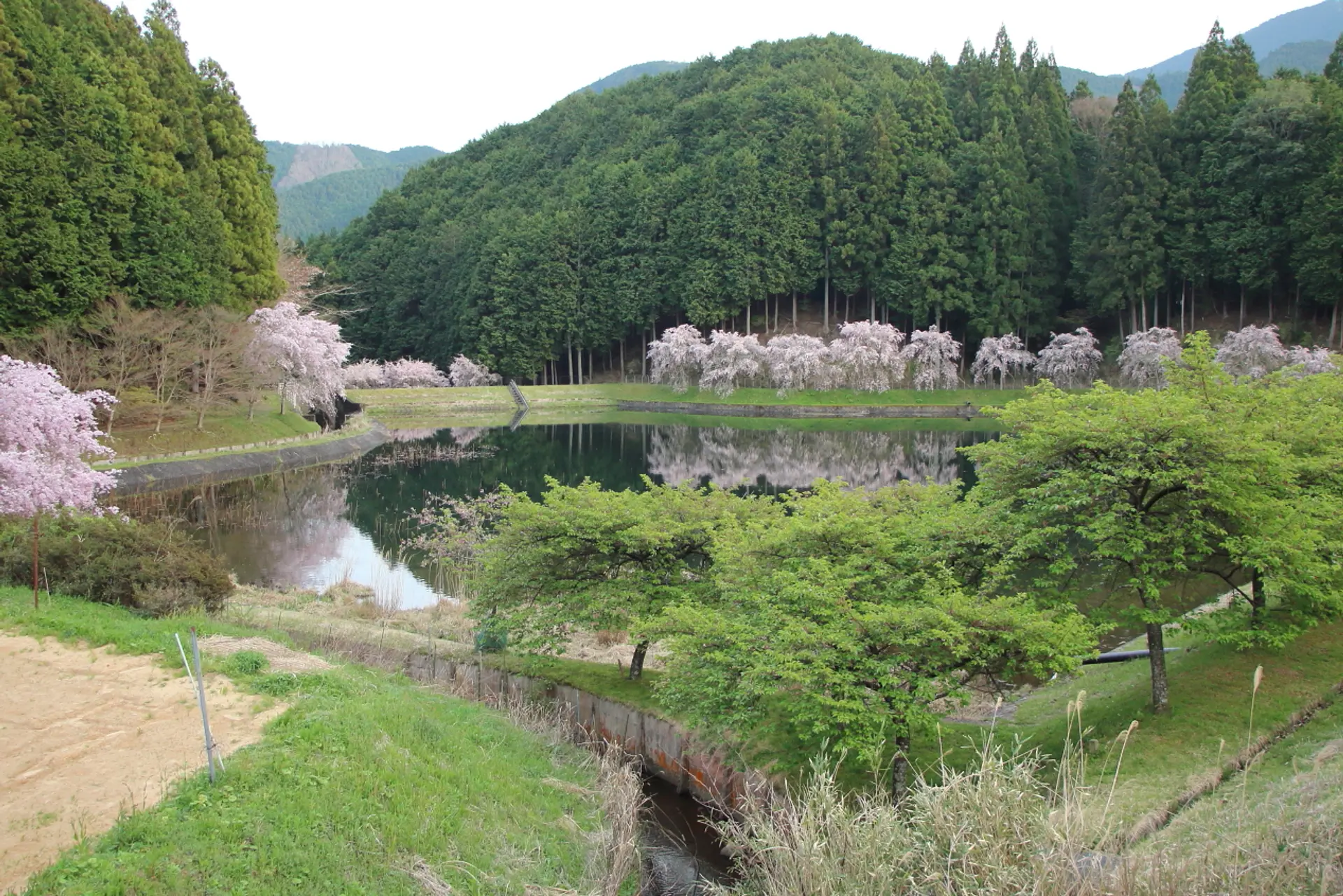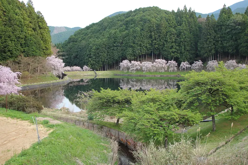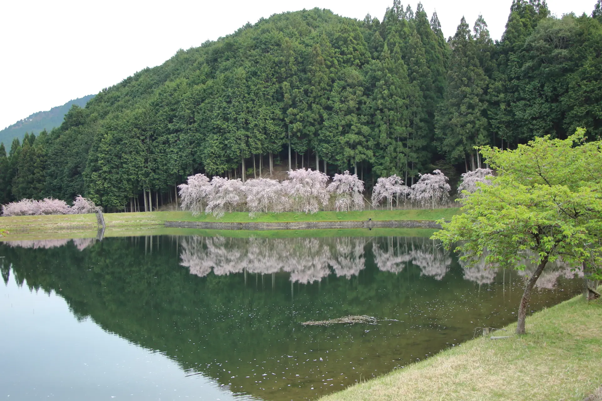 - スポット⑤:津市美杉町石名原の「大妻池のしだれ桜」