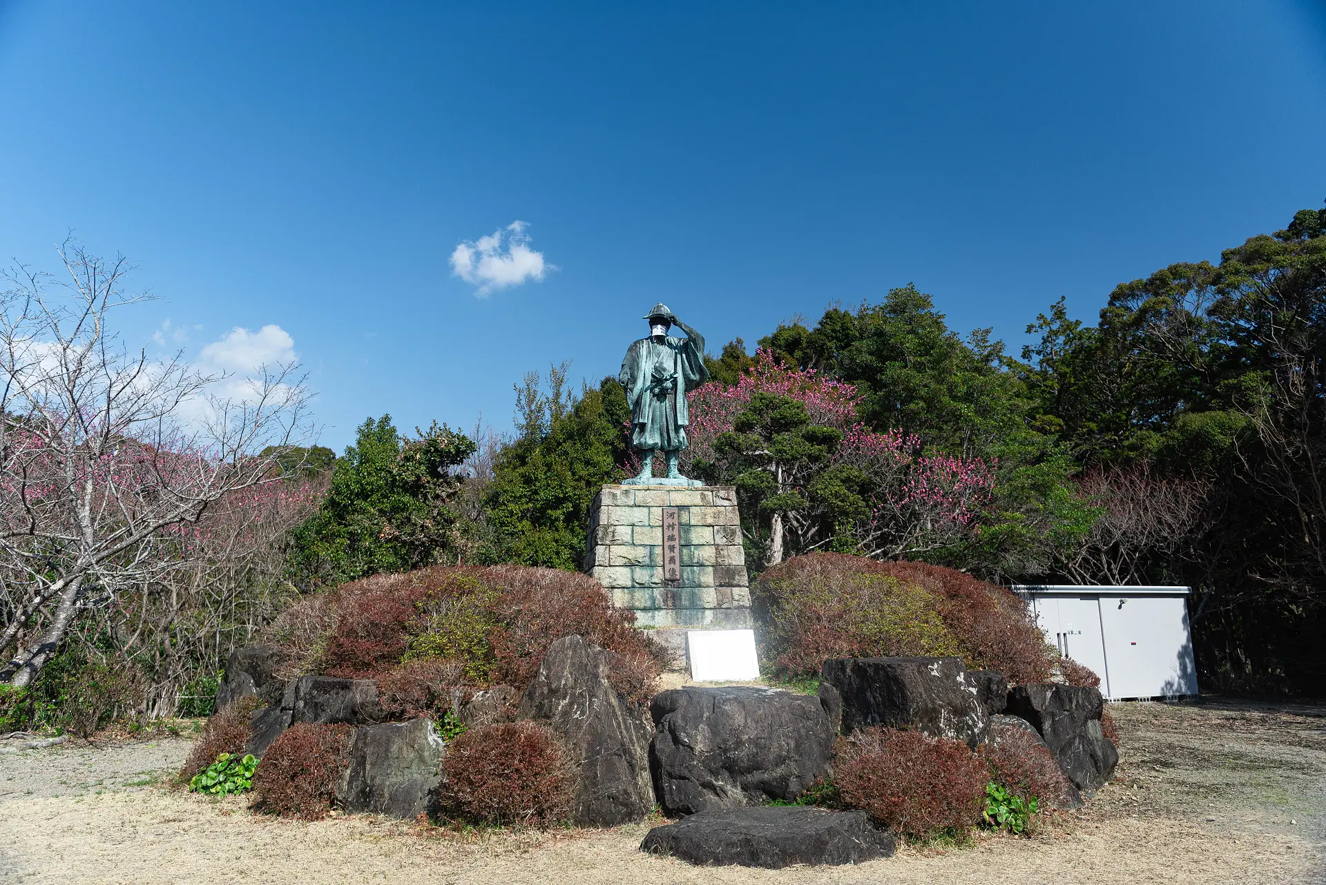 その功績をたたえ、国道260号沿いに作られた「河村瑞賢公園」は、早咲きの桜「河津桜」の名所として最近注目度がアップ。