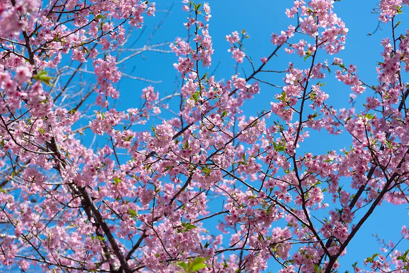 ソメイヨシノよりも鮮やかで濃いピンクの河津桜は、いよいよ春もすぐそこと感じさせてくれる早春の名物です。