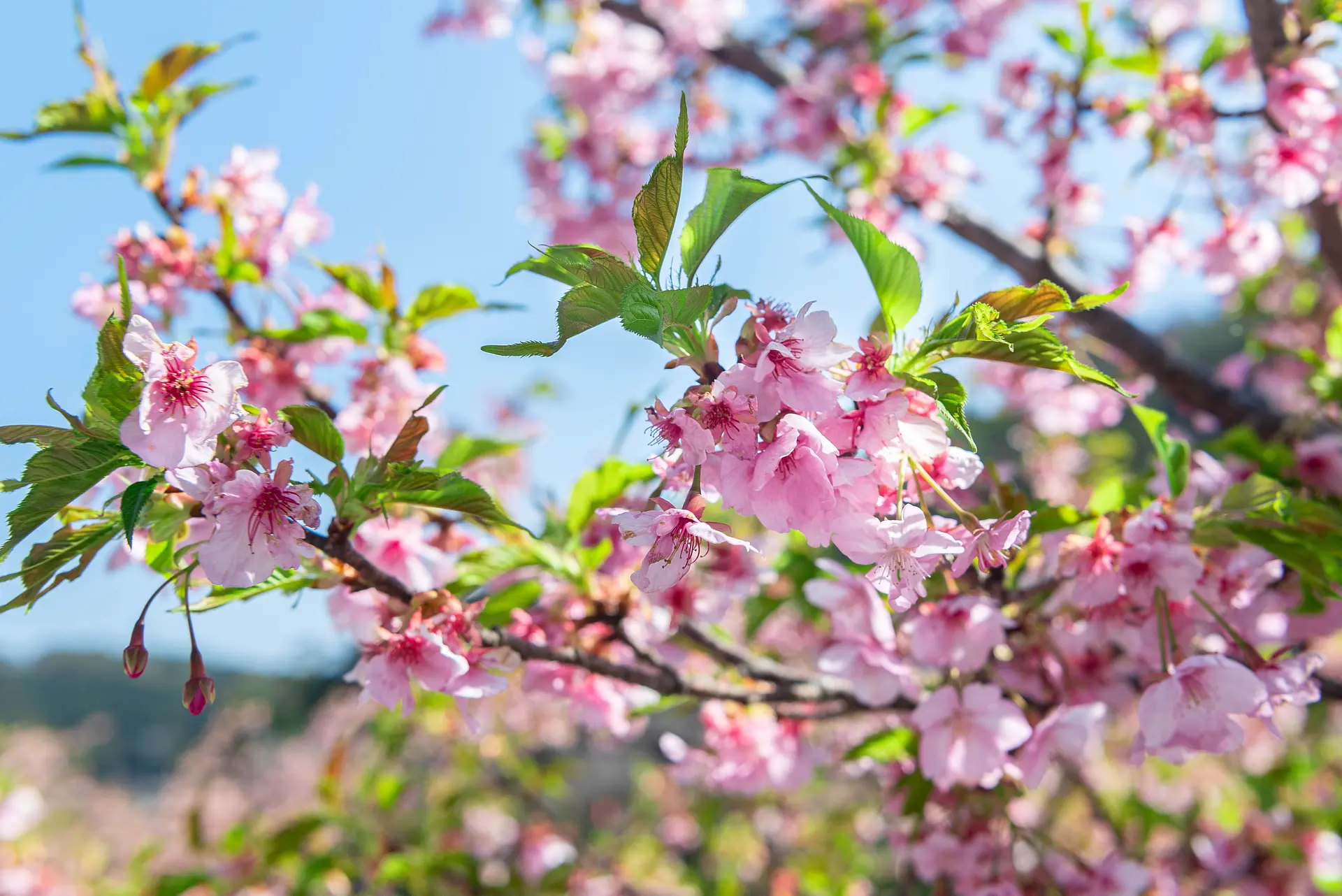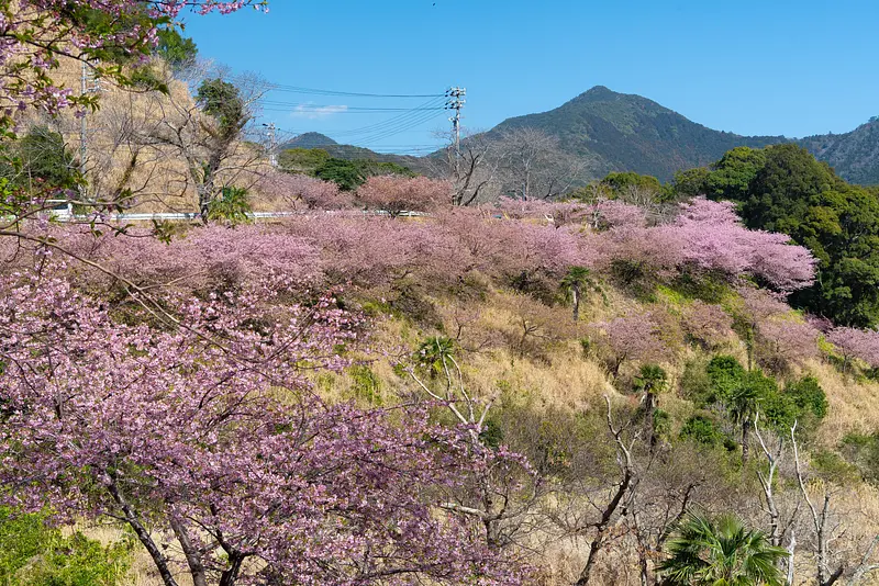 春の訪れを告げる河津桜が斜面一面に咲き誇る