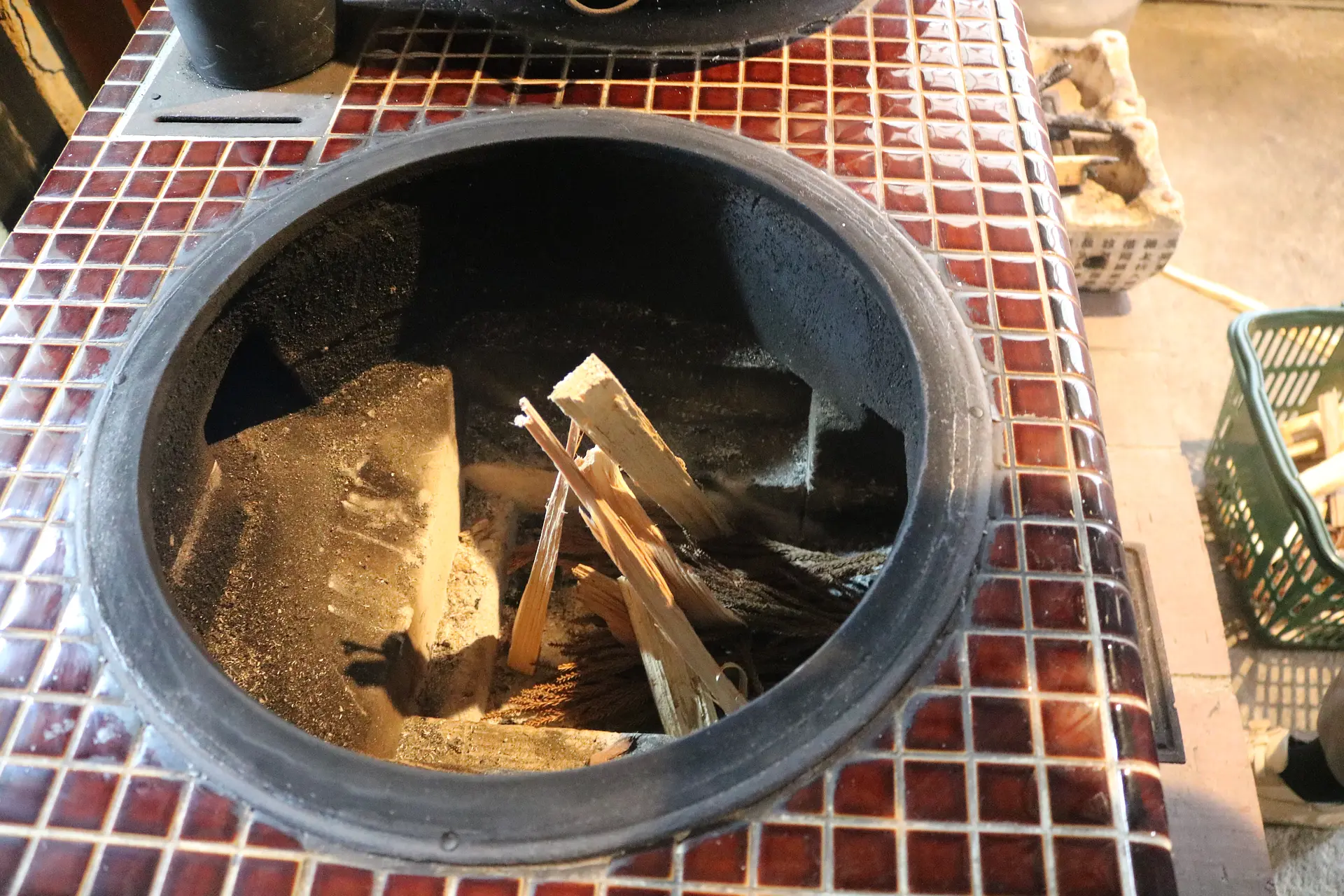 今回体験できることのひとつは、昔ながらのかまどに薪をくべて、火を起こしてごはんを炊く体験!炊飯器が主流の現代では、かまどでごはんを炊く機会はなかなかありませんよね。ここでは、薪をくべて火を起こし、じっくりお米を炊き上げる工程を体験できます。炎の揺らぎを眺めながら、立ち上る香りを感じる…五感をフルに使う贅沢な時間です。