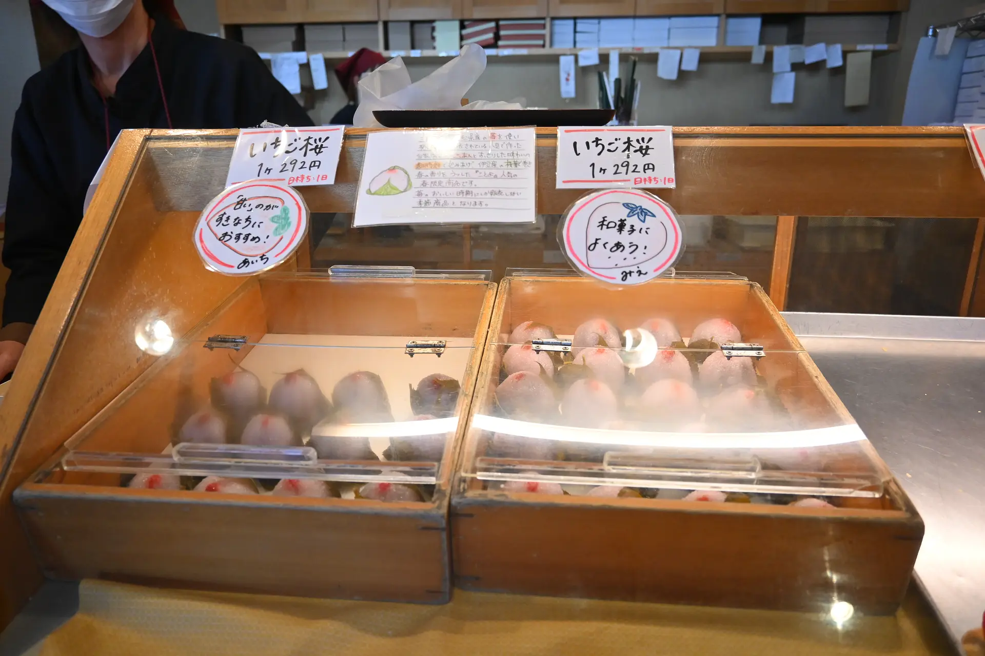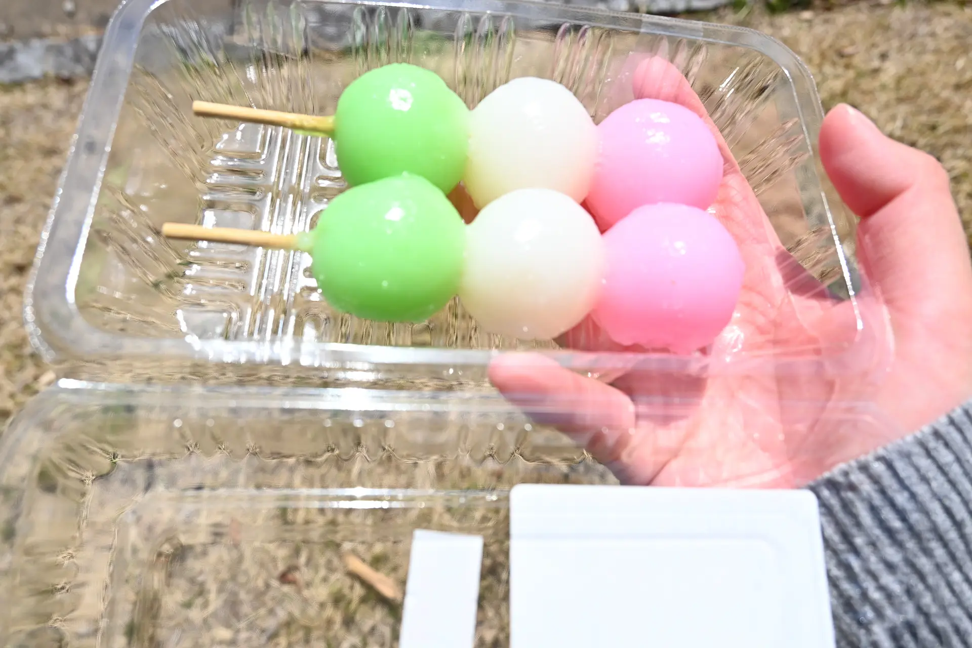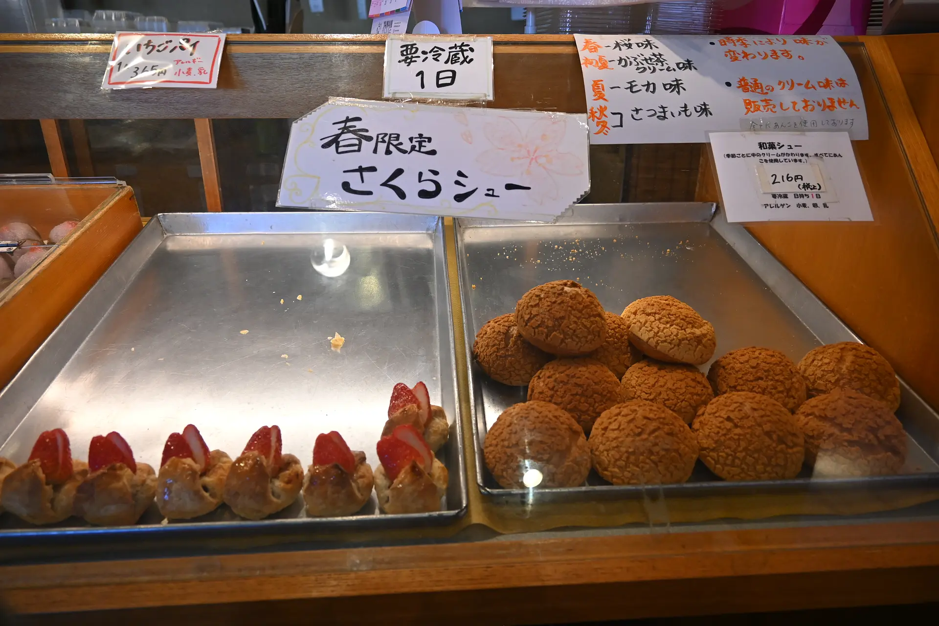 南部丘陵公園の近くには1953年創業、2024年全国菓子研究団体連合会の盆景菓子部門で準グランプリを受賞した和菓子の有名店「夢菓子工房ことよ」があります。お花見だんごを買いに行ってみると、春を感じる和菓子がたくさんありました。お勧めはいちご桜。道明寺のお餅でいちごを包み、桜の葉の塩漬けを巻いた桜もち風のお菓子です。中に入っているいちごは三重県産と愛知県産のいちごがあり、甘い方がお好きな方には愛知県産がお勧めで、和菓子に合うのは三重県産のいちごだそうです。春限定のさくらのシュークリームやいちごパイもあり、春の味覚が楽しめます。