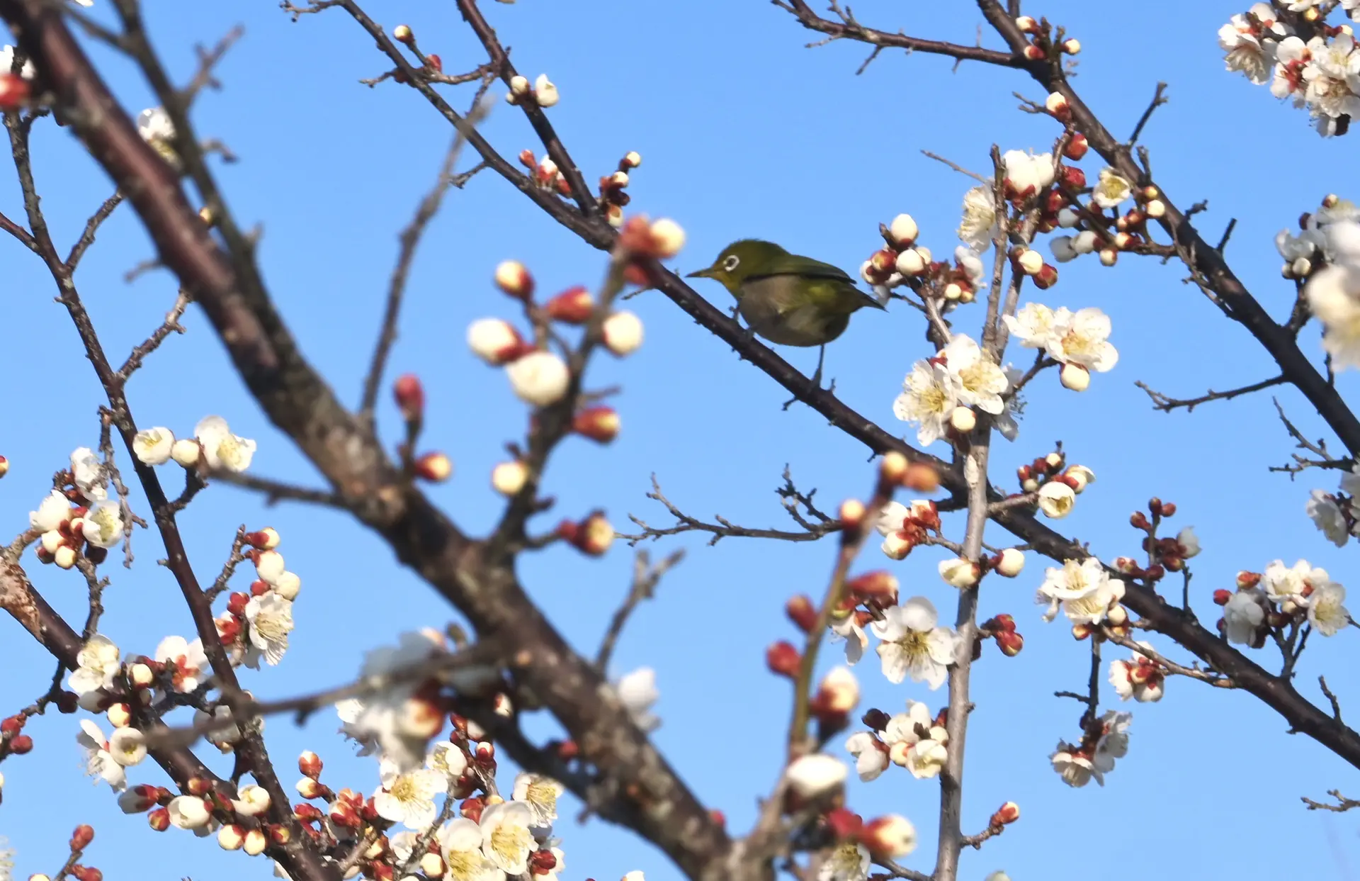 ところが今年まだ1月で梅も咲いていないのに、自宅の庭のサザンカにメジロが10羽くらい止まっていました。2月末に南部丘陵公園に行ってみたら、梅が三分咲きなのにあちこちで小鳥のさえずりが聞こえます。よく見るとメジロがあちこちで飛び交っています。南部丘陵公園でこれほどたくさんのメジロを見たのは初めてです。満開になったらもっとたくさんのメジロが見れるかも。カメラを持ってまた行きたいです。