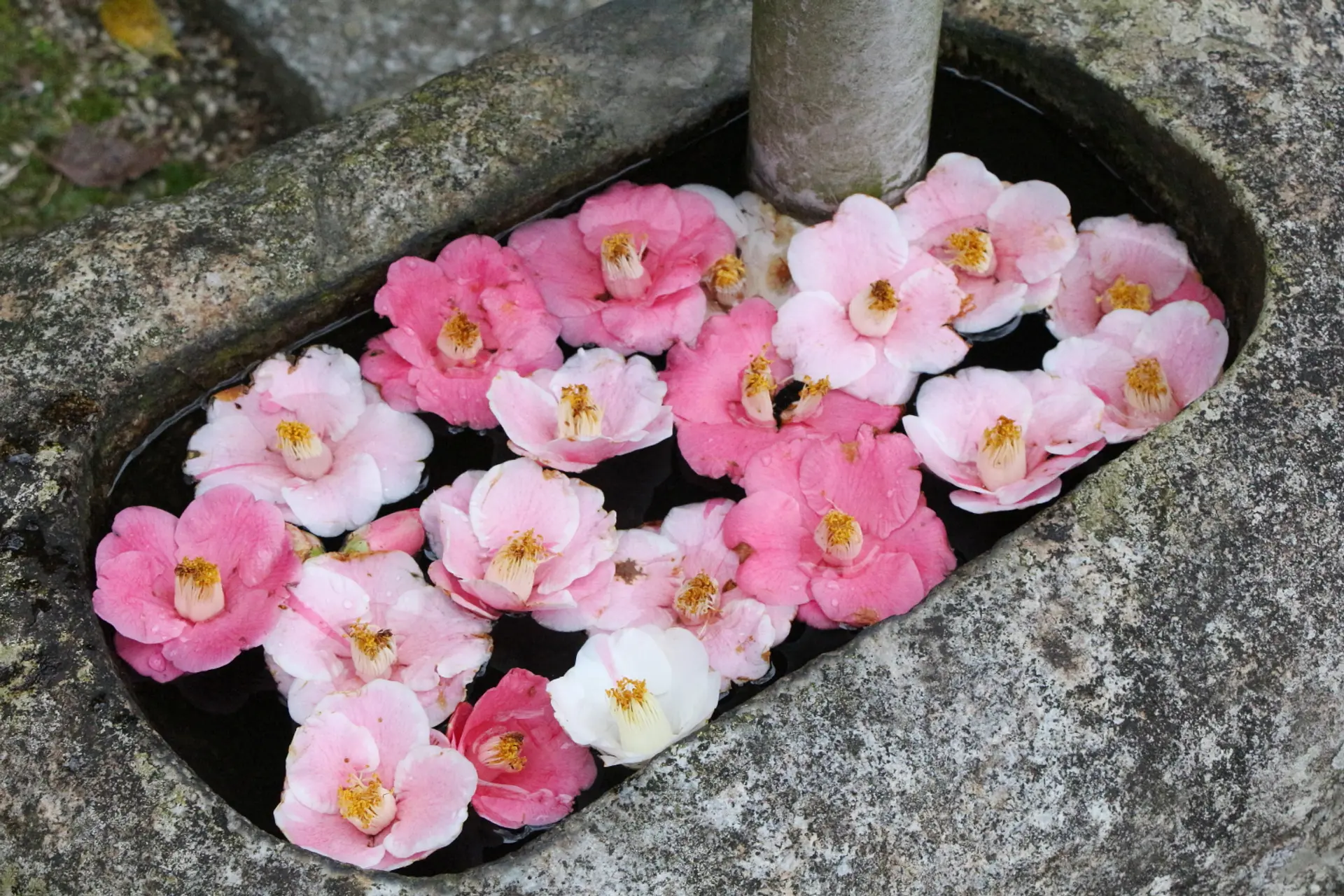 また、落ちた花は花手水として飾られ、訪れる人の目を楽しませてくれています。