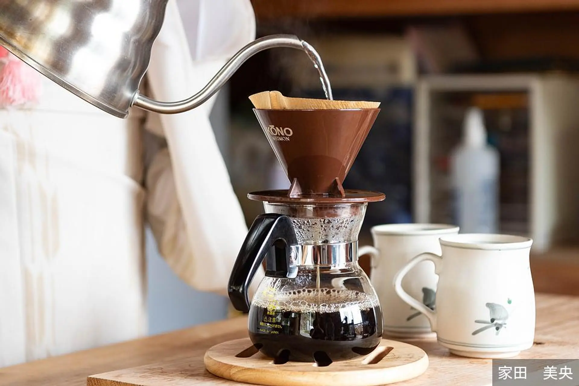 大阪の珈琲焙煎研究所のコーヒーも注文を受けてからハンドドリップでいれてくれます。