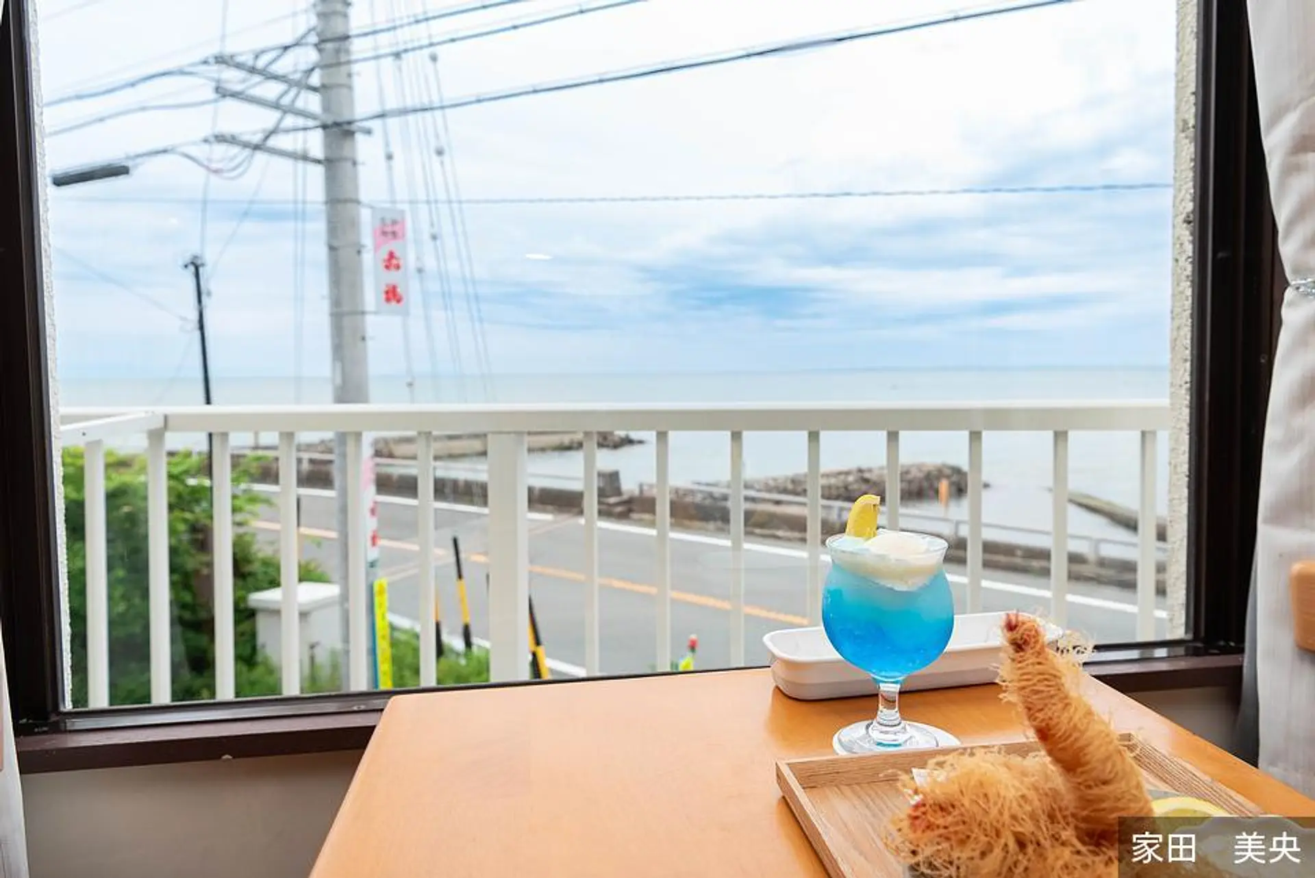 潮かけ祭りの会場でもある大島を沖合に臨む手作り料理とスイーツの小さな食堂