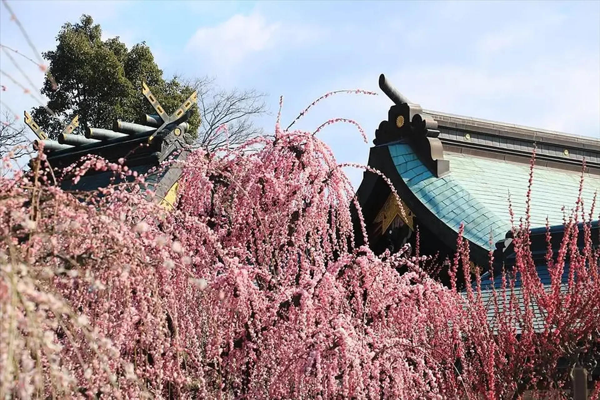 結城神社の梅 境内神苑に咲く趣あるしだれ梅