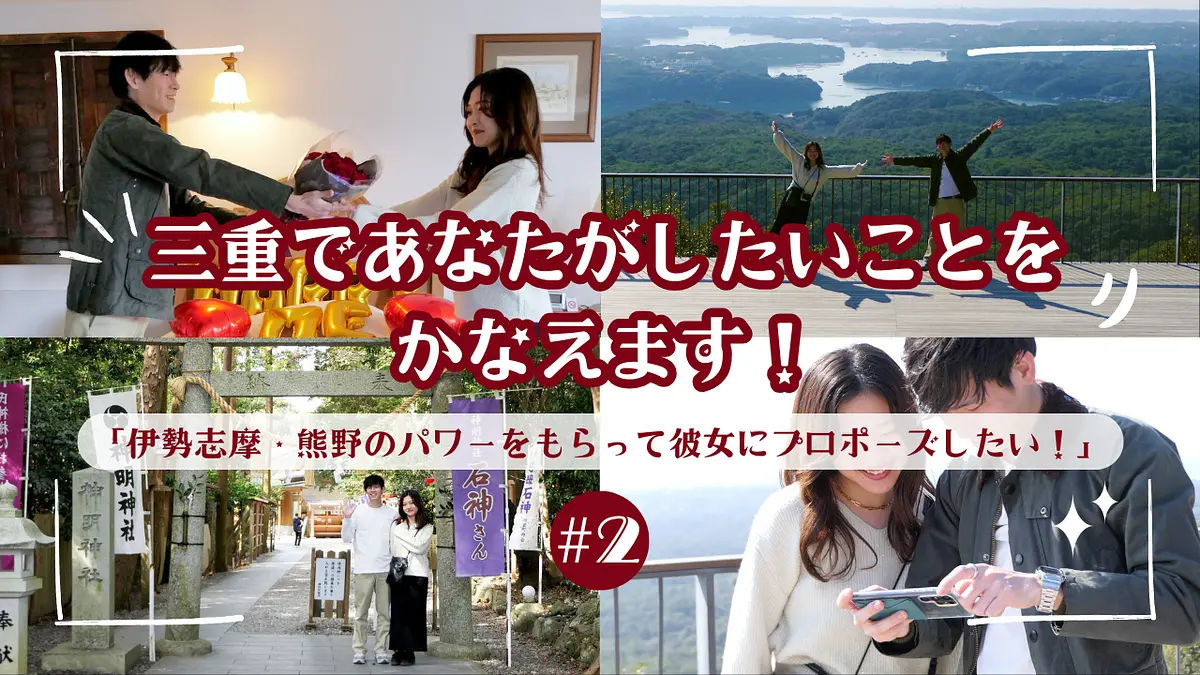 いにしえの歴史ある伊勢志摩と熊野からパワーをもらい、素敵なプロポーズをお手伝いする1泊2日の三重の旅。絶景とパワースポットの数々に加え、彼女へのサプライズが用意された志摩地中海村のプロポーズお手伝いプランにも注目です。