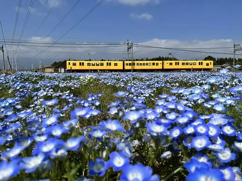 三岐鉄道北勢線大泉駅の西側と、いなべ市役所の南東の一角にて、ネモフィラの花をお楽しみいただくことができます。 三岐鉄道北勢線の黄色いナローゲージの車両とブルーの可愛らしいネモフィラを撮影しようと、多くの写真愛好家がシャッターチャンスを狙う人気のスポットです。