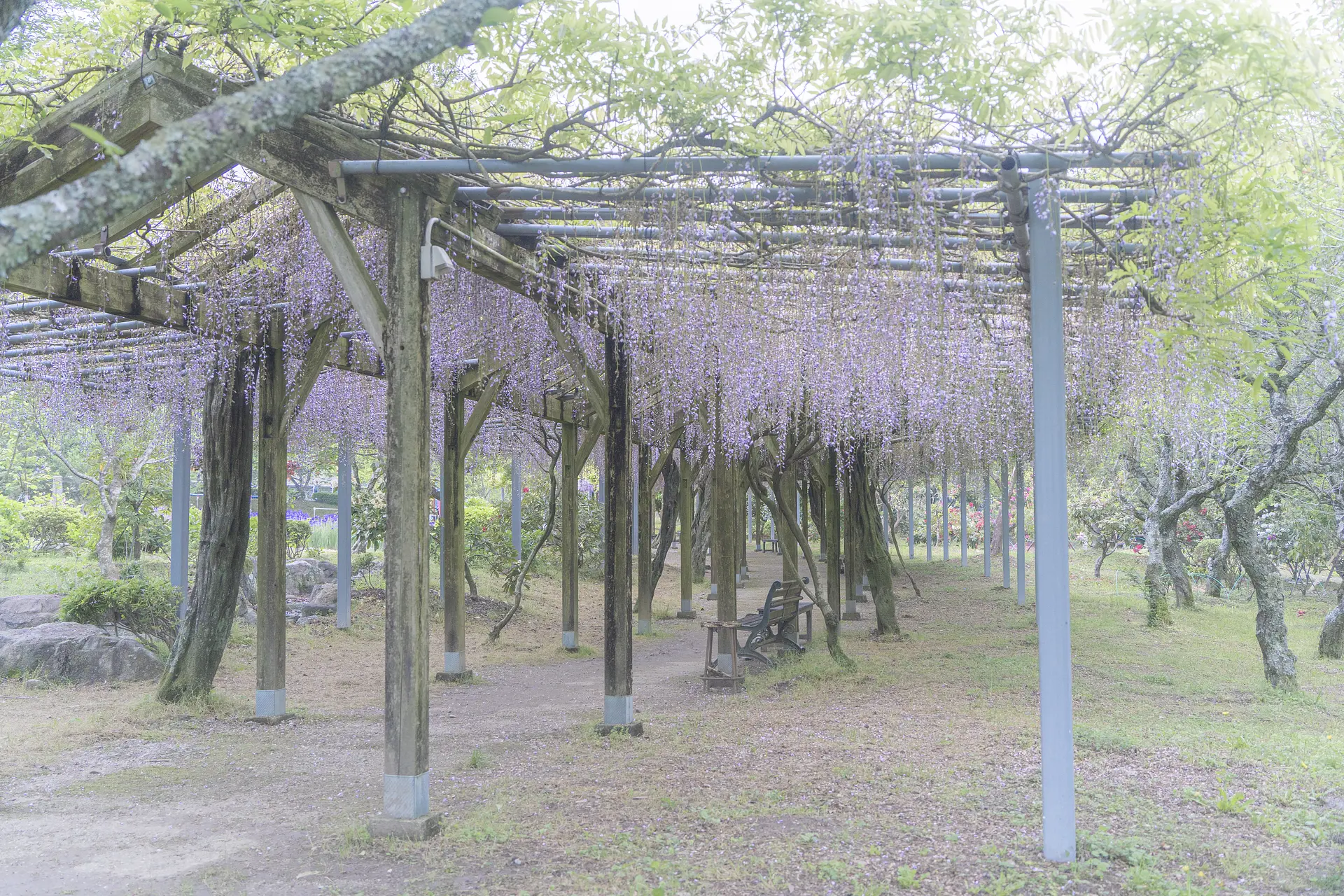 度会郡大紀町全長60mの藤棚、シャクナゲ、サクラなどの花の見どころが満載。すべり台、ジャングルジムなどの遊具も整備されており、ファミリーで過ごすのにも最適です!