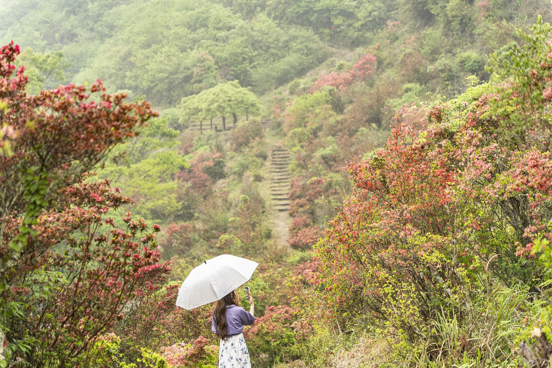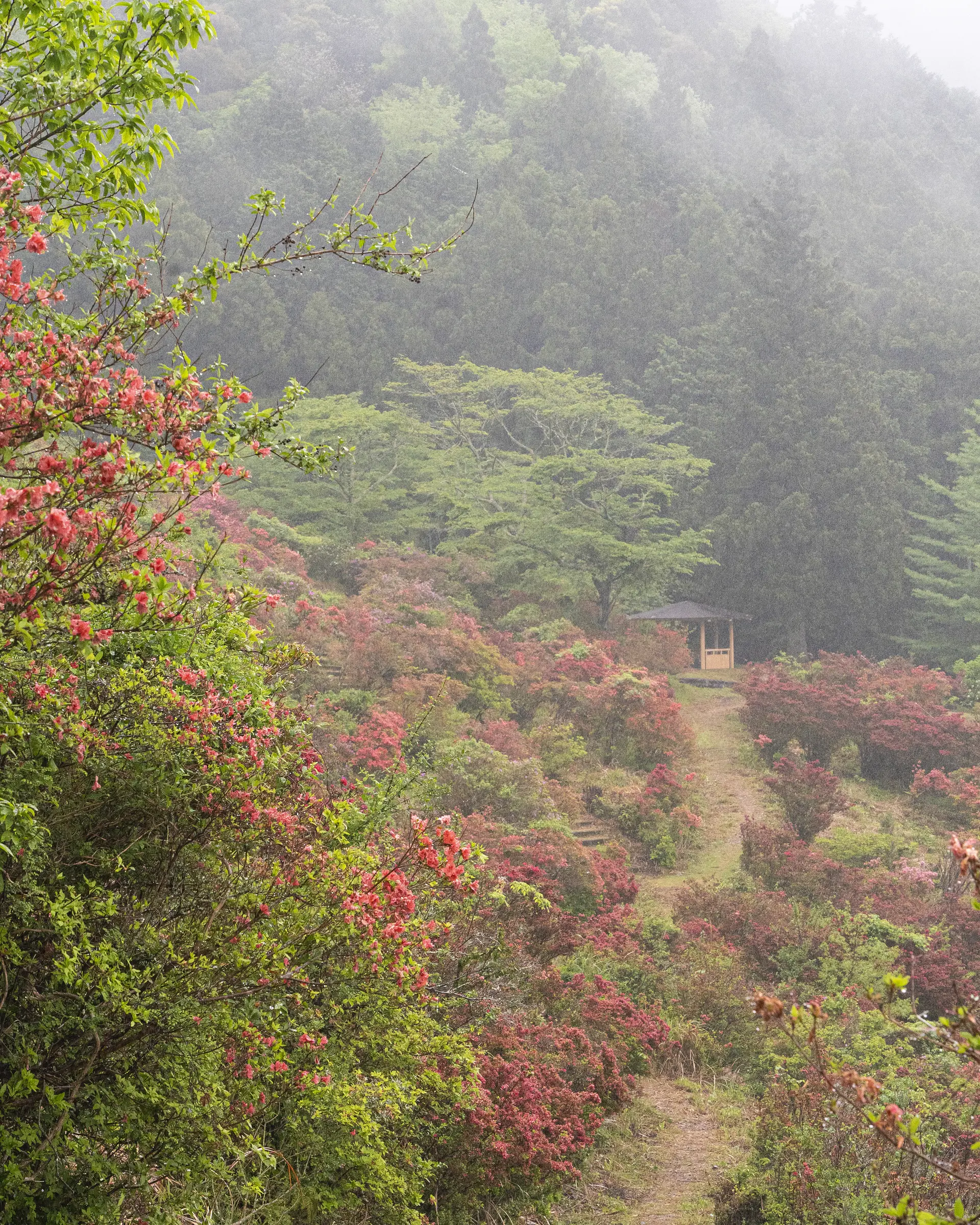 検索してもほとんど情報が出てこない知られざるスポット。実は私も、2024年に初めて来訪して驚きました。こんなに見事なつつじの名所が、奥伊勢に存在していたとは!約5haもの広さの山の斜面に自生する、色とりどりのつつじ。1万株以上あるそうです。つつじを巡る遊歩道と階段が整備されていて、高い位置からつつじの群生を見渡すこともできます。