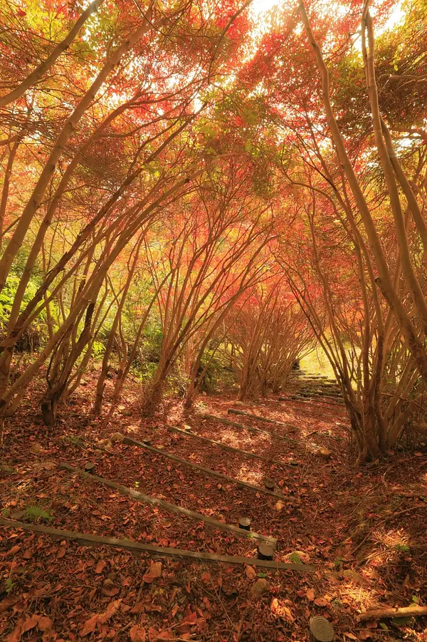 多気郡大台町大台町下真手にある真手公園・丸山公園は、近年話題の紅葉スポット。丸山公園のドウダンツツジが続くトンネルは、地元で「トトロの森」と呼ばれています。