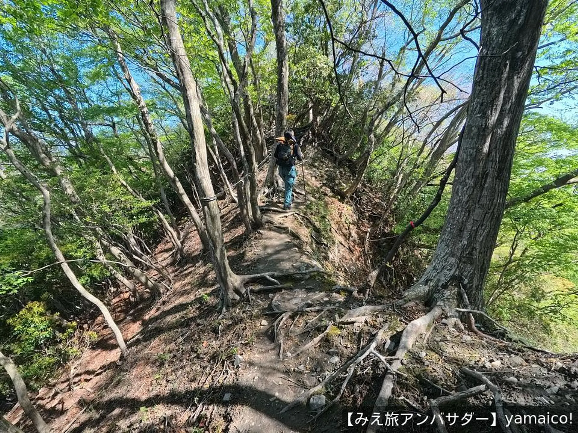 雲母峰の登山道は、序盤から急登があります。ゆっくりと呼吸を整えながら登っていきましょう。キツイ登り坂を終えた後の山頂でとても気持ちがいい絶景に出会えます。天気が良い日は、鈴鹿セブンマウンテンの御在所・鎌ヶ岳なども見られます。
