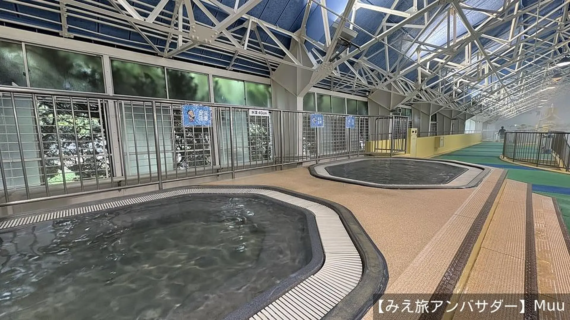 温水のプールとはいえ、水から離れている時間が長いと寒さを感じることがあります。そんな時は2階へ!2階には1階のプールより水温が高い温泉プールがあります。体がぽかぽかして気持ちよく、元気をチャージできます。