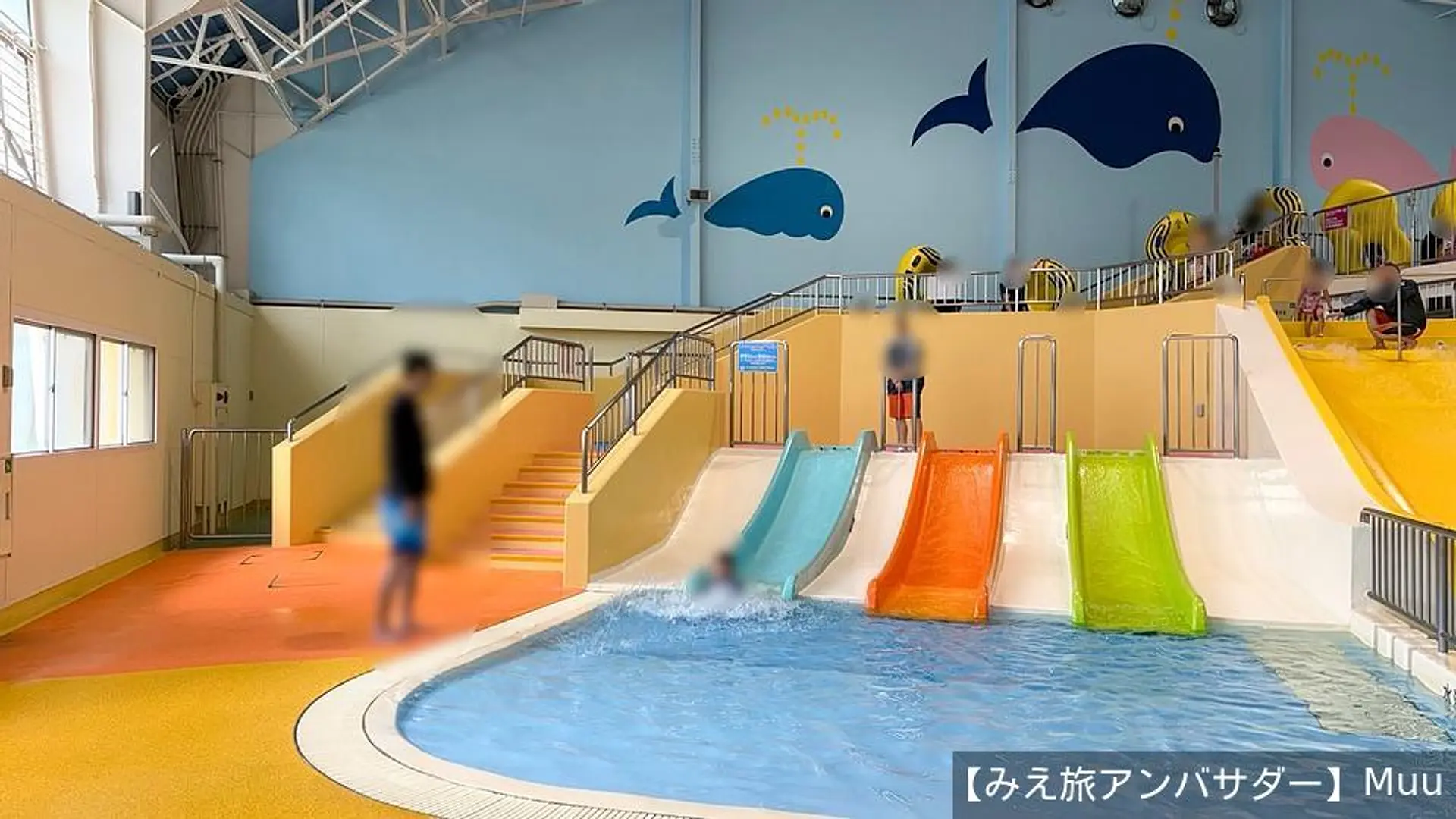 更衣室とロッカーがある場所からプールまでは外を歩きますが、遊び場自体は屋内なので紫外線や雨を気にすることなく楽しめるのが魅力。また、水温は約30度に保たれた温水プールであるため、春でも快適に過ごすことができます。気温や天候に左右されないことでお出かけ計画が立てやすいのは大きなメリットですよね。