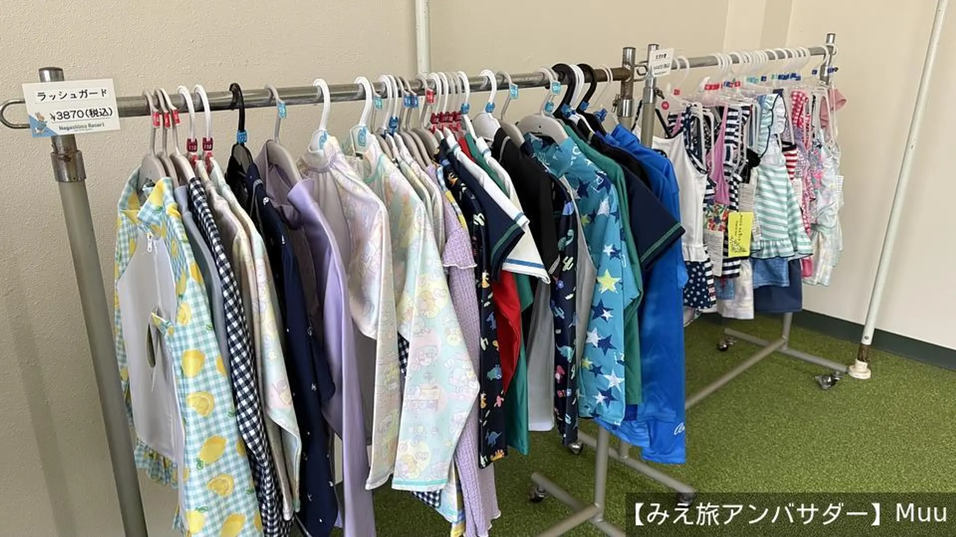当日券も販売しています。また、受付付近では子供から大人サイズまで水着の販売もあります。