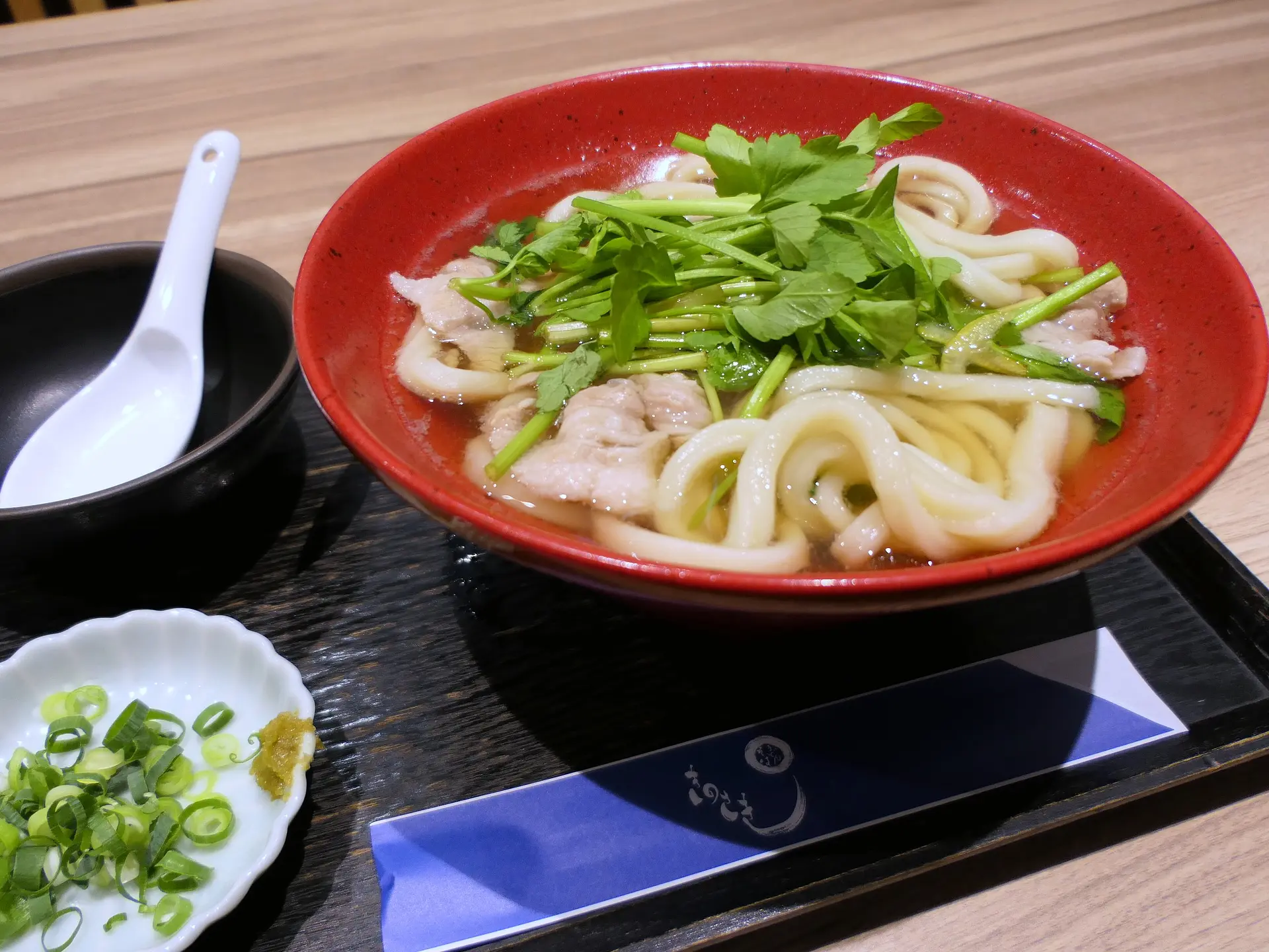 私がいただいたのは、初夏限定の「せりと豚うどん」です。こしのある麺、もっちりとした食感、のどごし。飲み干したくなる香り高いお出汁。至高のうどんに、時を忘れて満たされました。