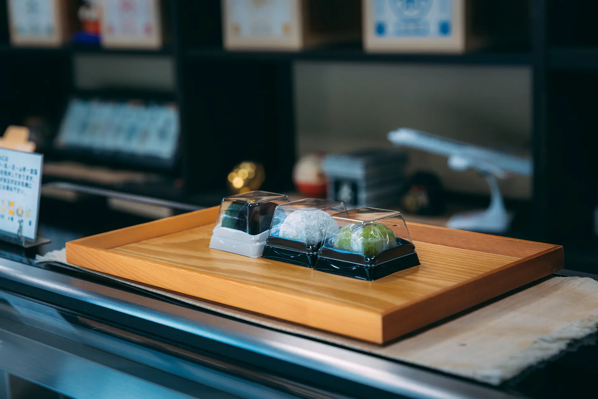 緑茶餡とクリームがお餅におおわれた一番人気の茶々大福は通年で味わえます。季節限定の和菓子もありますよ。テイクアウトも人気。