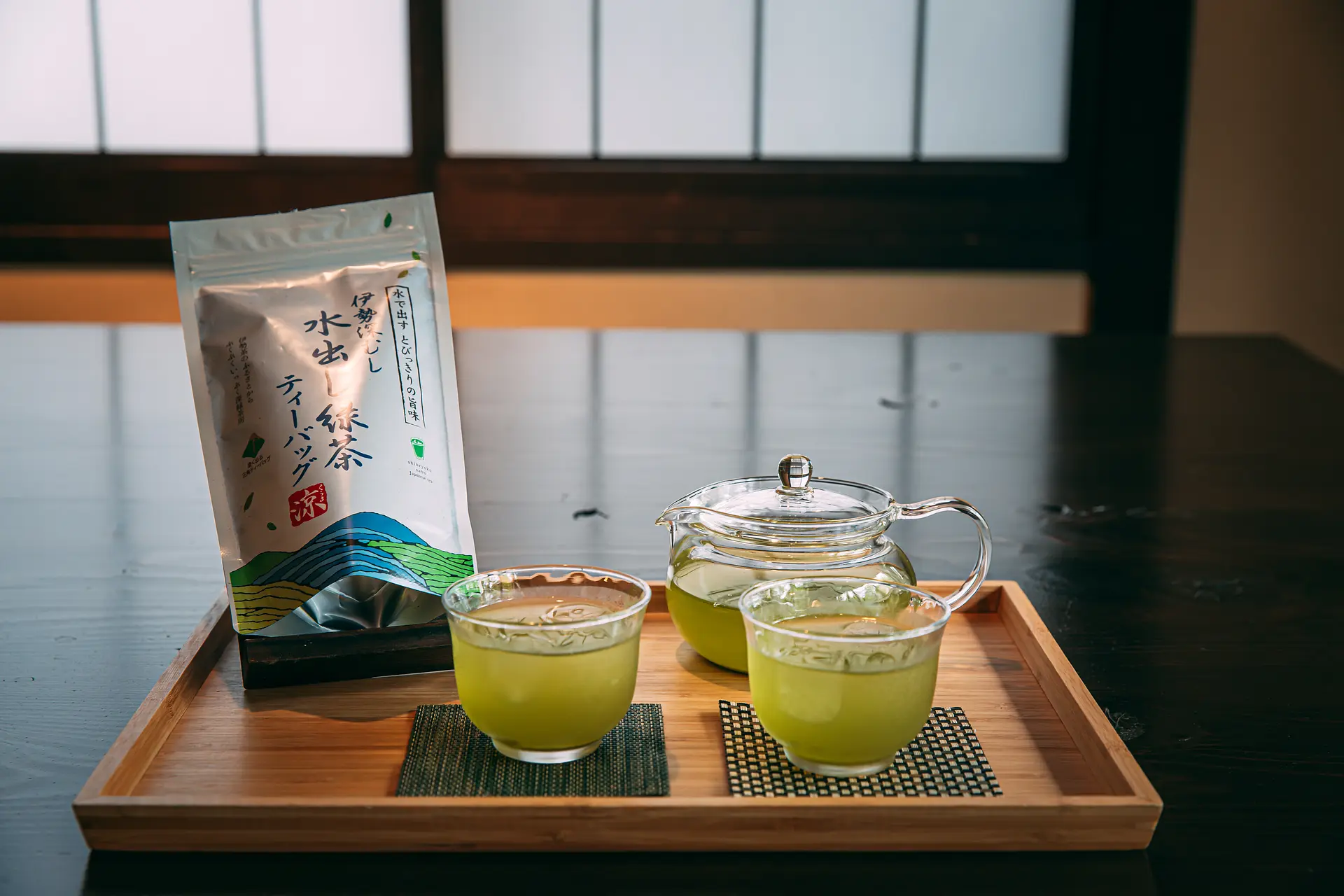 急須でお茶を淹れる習慣がない方でも、気軽に楽しめる夏の定番商品「伊勢深むし水出し緑茶ティーバッグ 涼」。1リットルの水に2~3個のティーバッグを入れるだけで、おいしい水出しのお茶を飲むことができます。