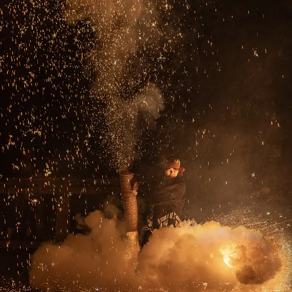 こちらの写真は船の光跡と花火を長秒で撮影し、2枚の写真を比較明合成しました。