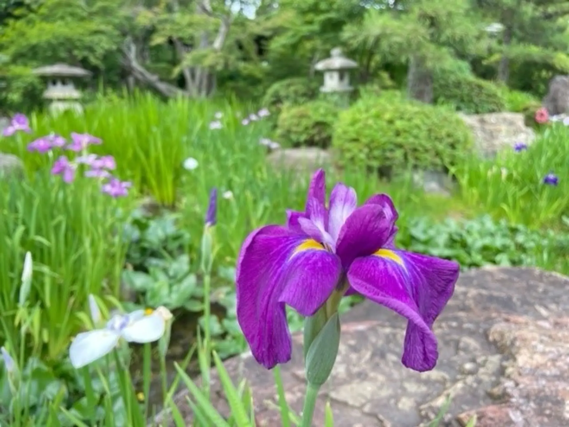 三重県桑名市にある、現在一般公開中の諸戸氏庭園では、花しょうぶが見頃を迎えています。