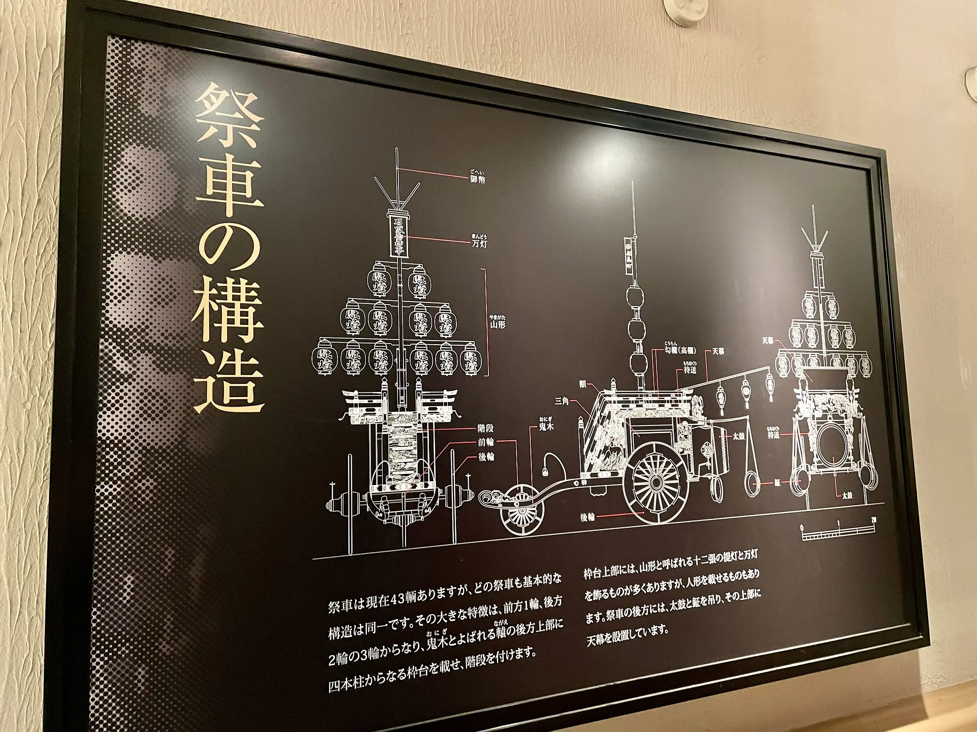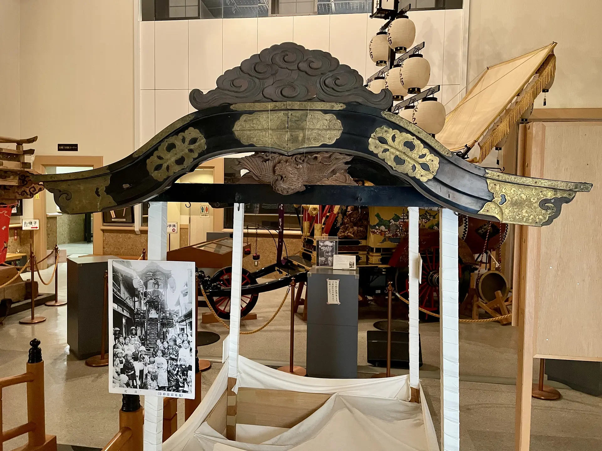 展示されている漆仕上げの祭車は、江戸時代末期の作と推定され、当時の技術の結晶です。
