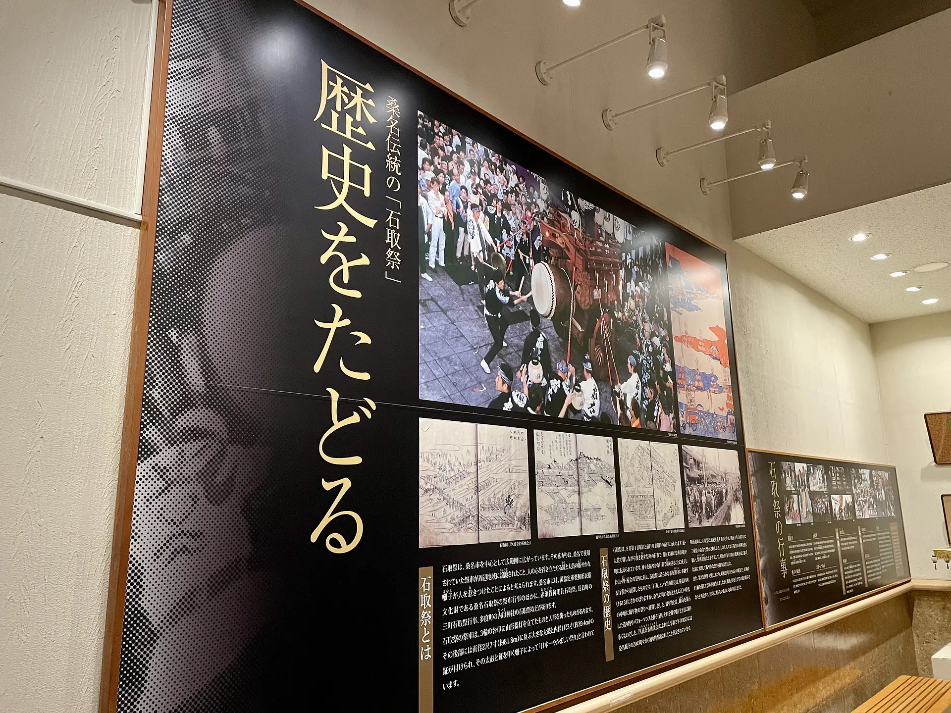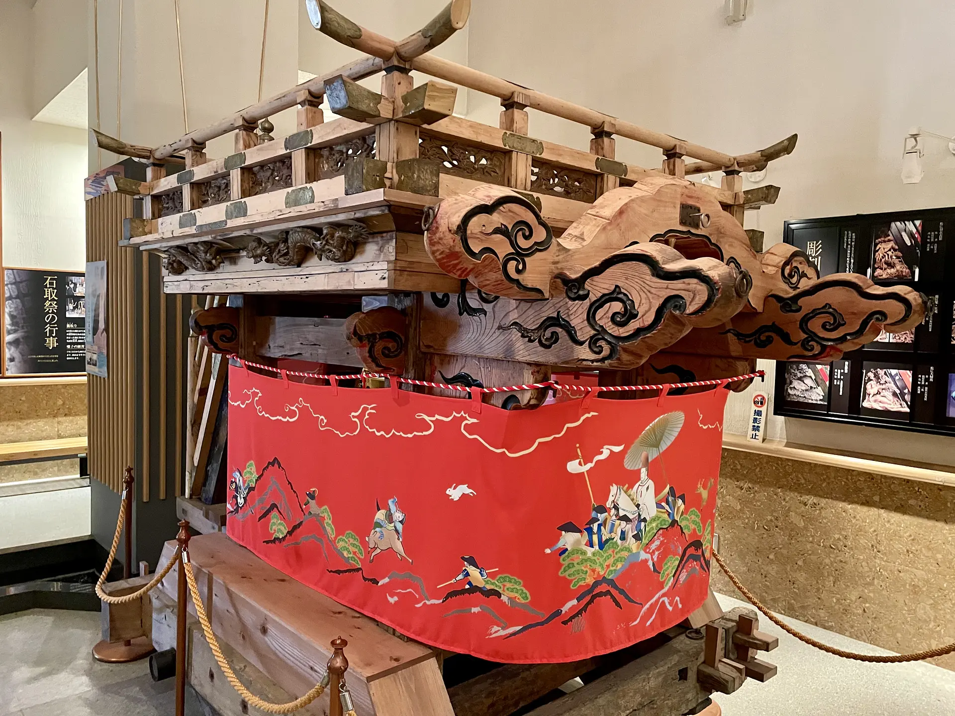 石取会館には18世紀から19世紀ごろに用いられていたとされる『石取地車(じぐるま)』も展示されています!