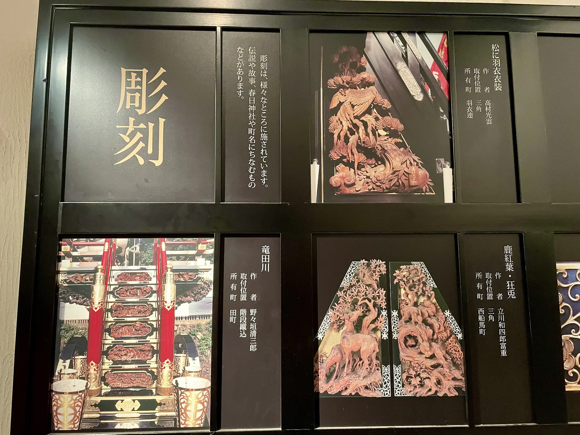 桑名石取祭のほとんどの祭車には彫刻、装飾金具、蒔絵や漆塗りが施されています。石取会館では各町内の宝である祭車装飾の一部を写真パネルで見ることができます。中でも彫刻では明治大正期に活躍した高村光雲作のものもあり、その豪華さから”動く美術館”と呼ぶ声もあります。