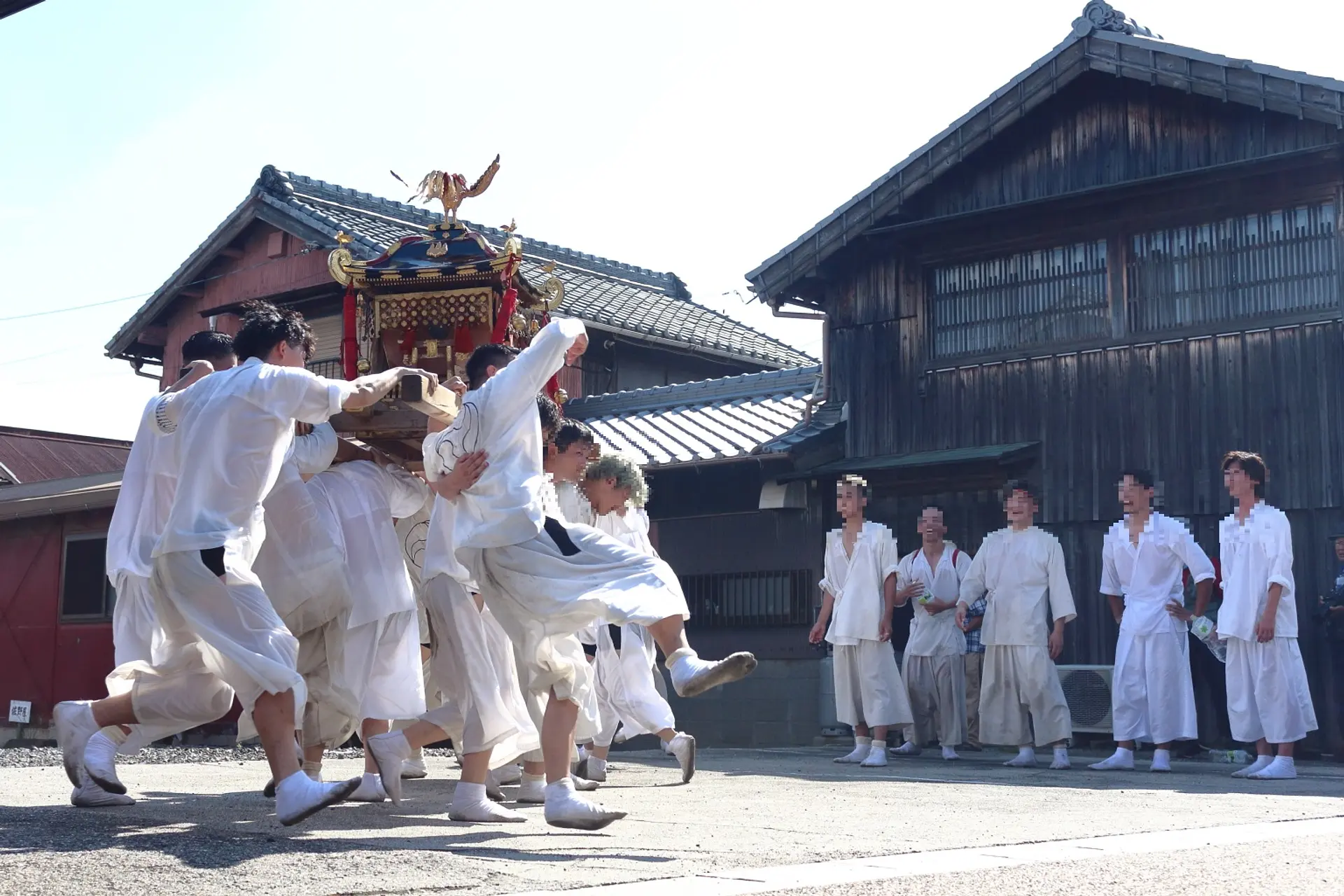 威勢がいい若者たちが白装束を身に纏い、神輿を担いで関神社から旅御所を練り歩き、漲るパワーは見応えありです!
