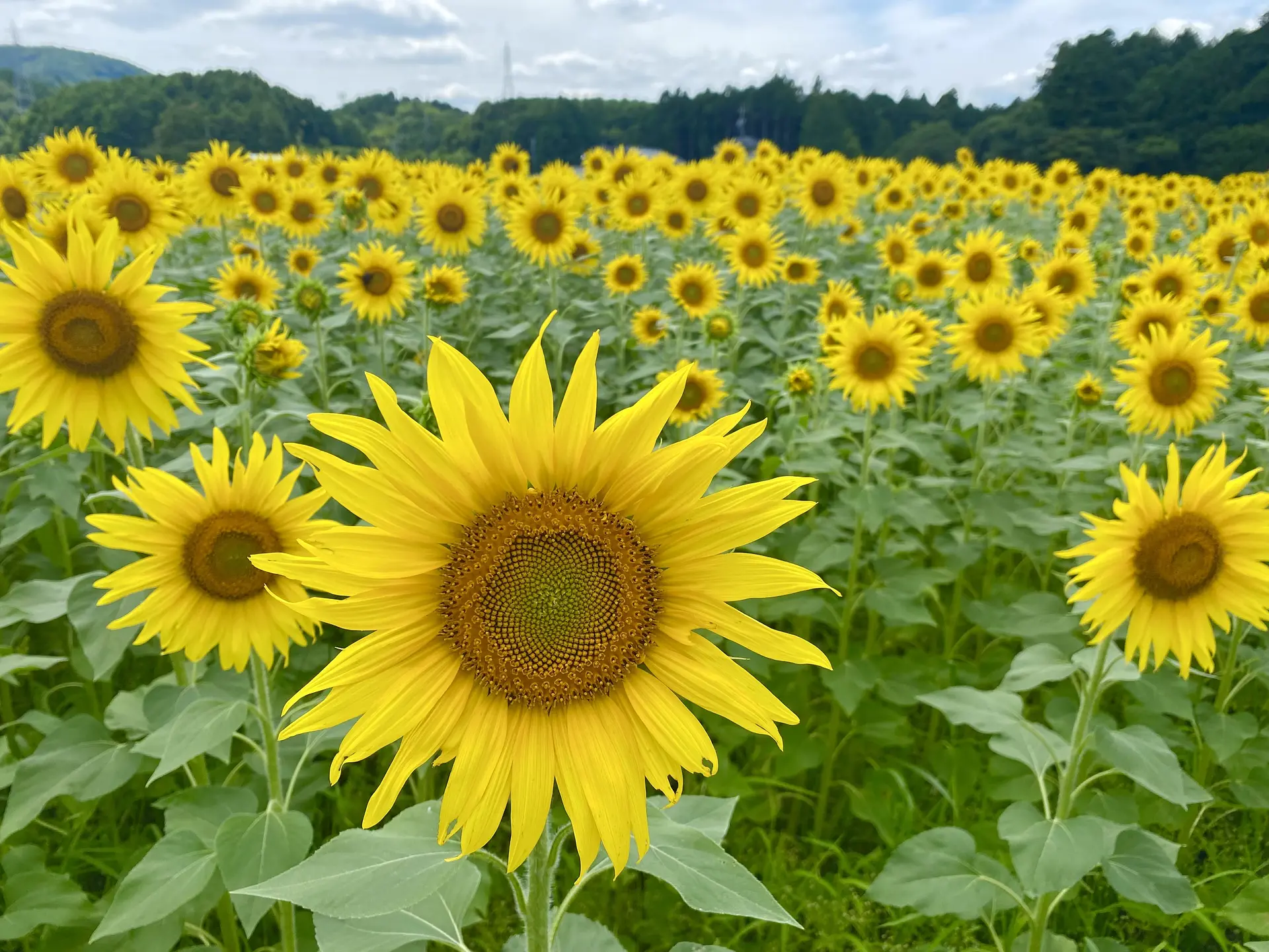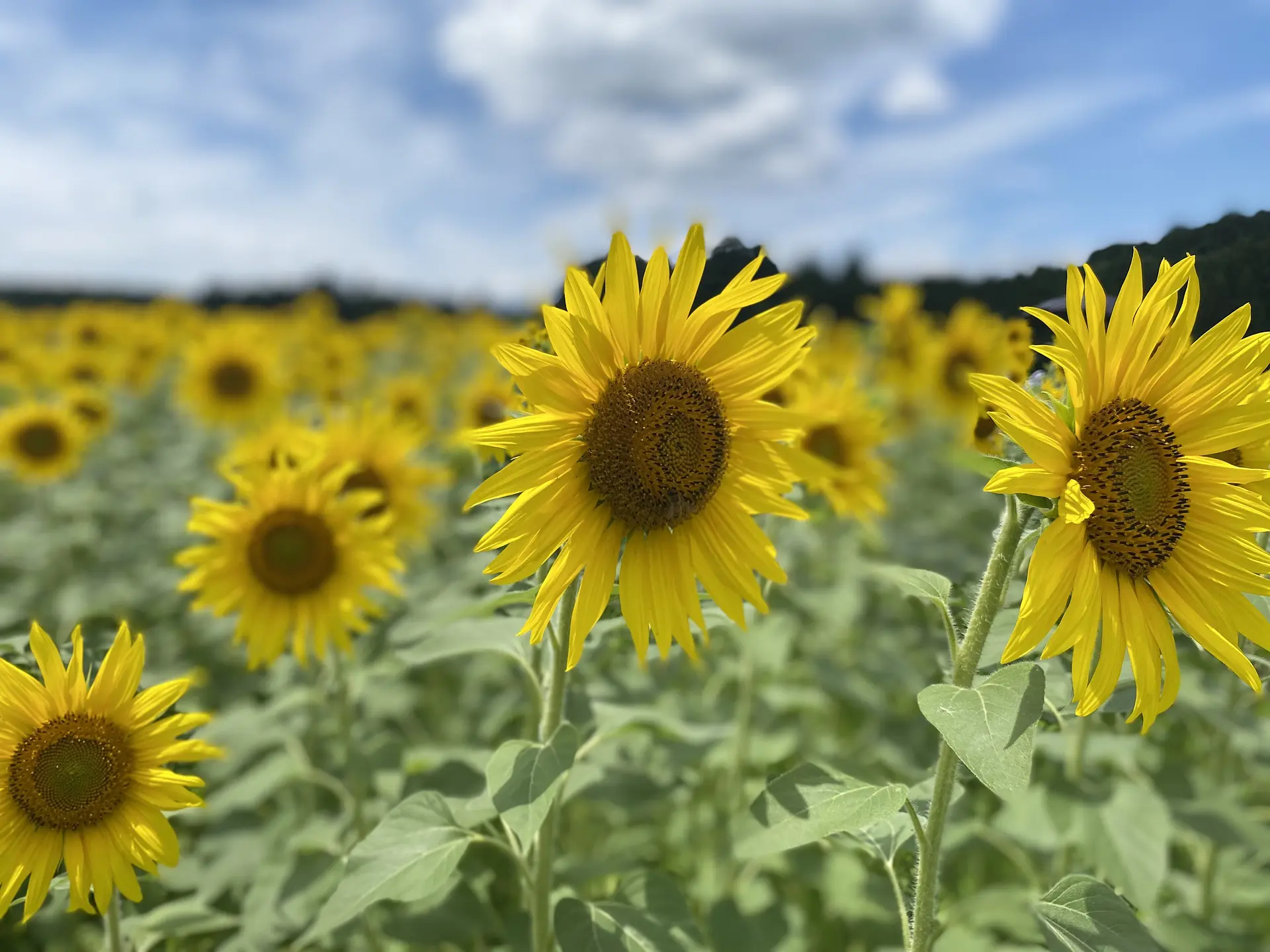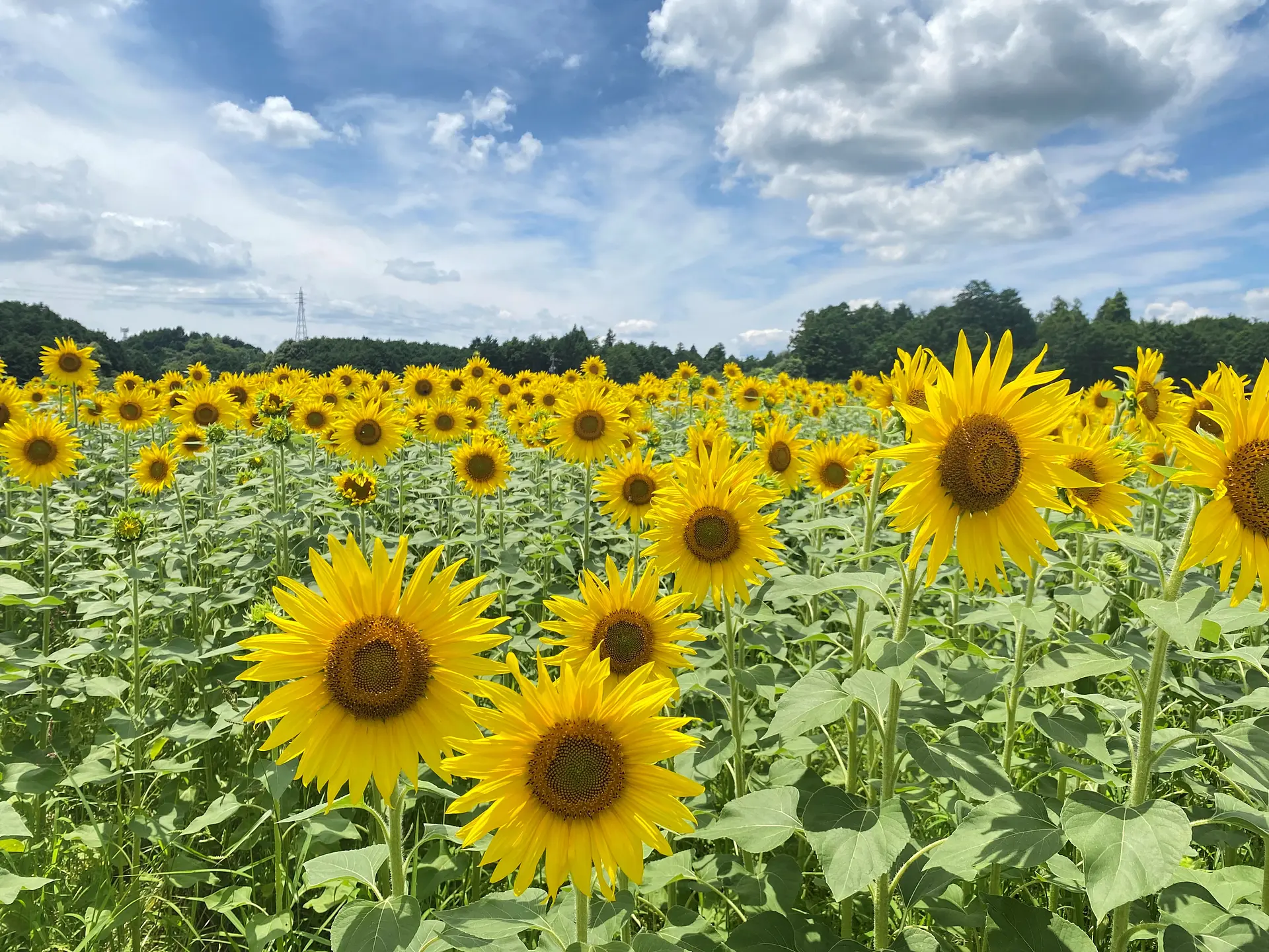真夏の太陽の下で、元気いっぱい花を咲かせるひまわりの花🌻。一斉に咲く黄色いひまわりを見ていると、自然と元気がもらえて、思わず笑顔に!