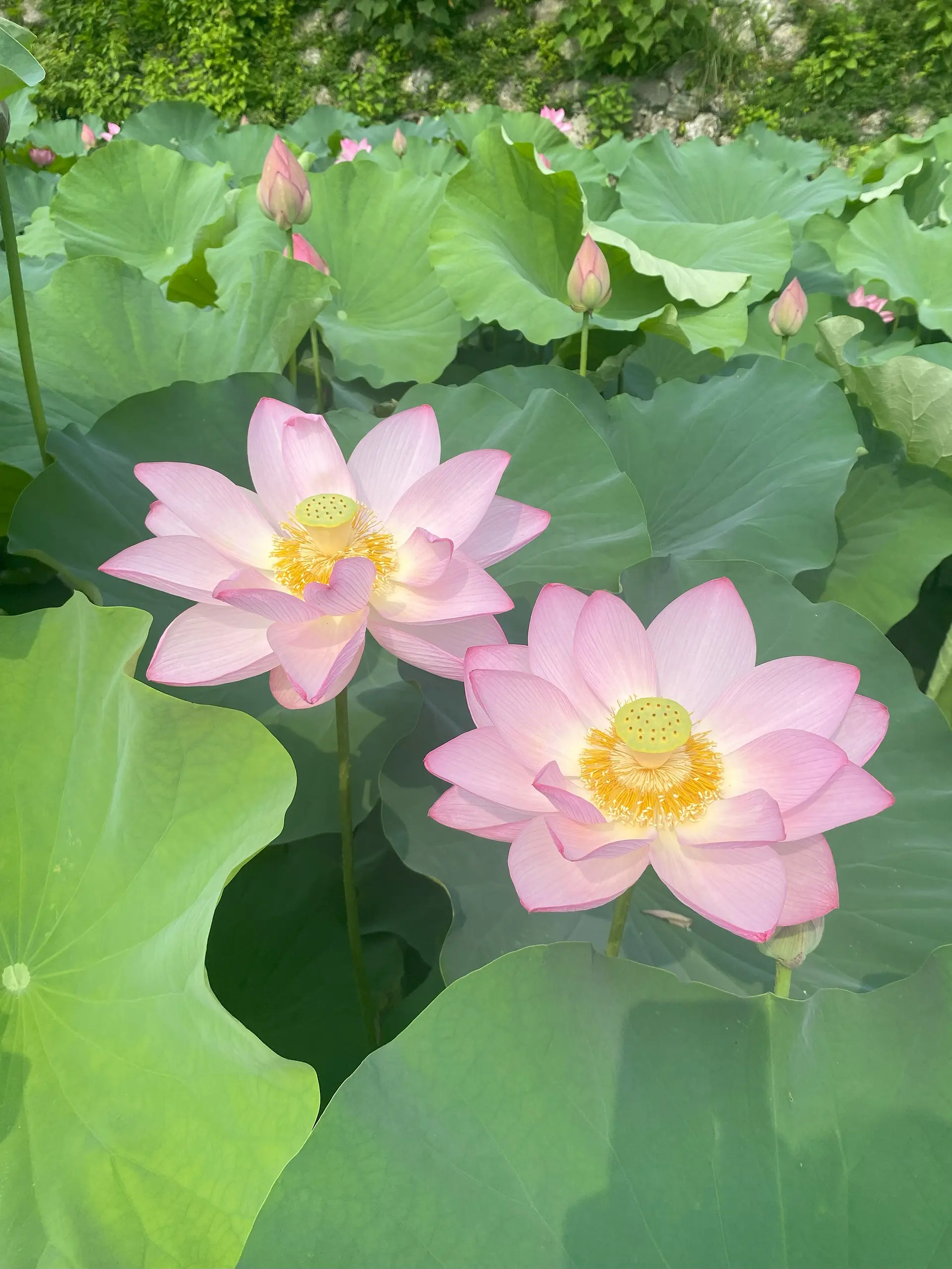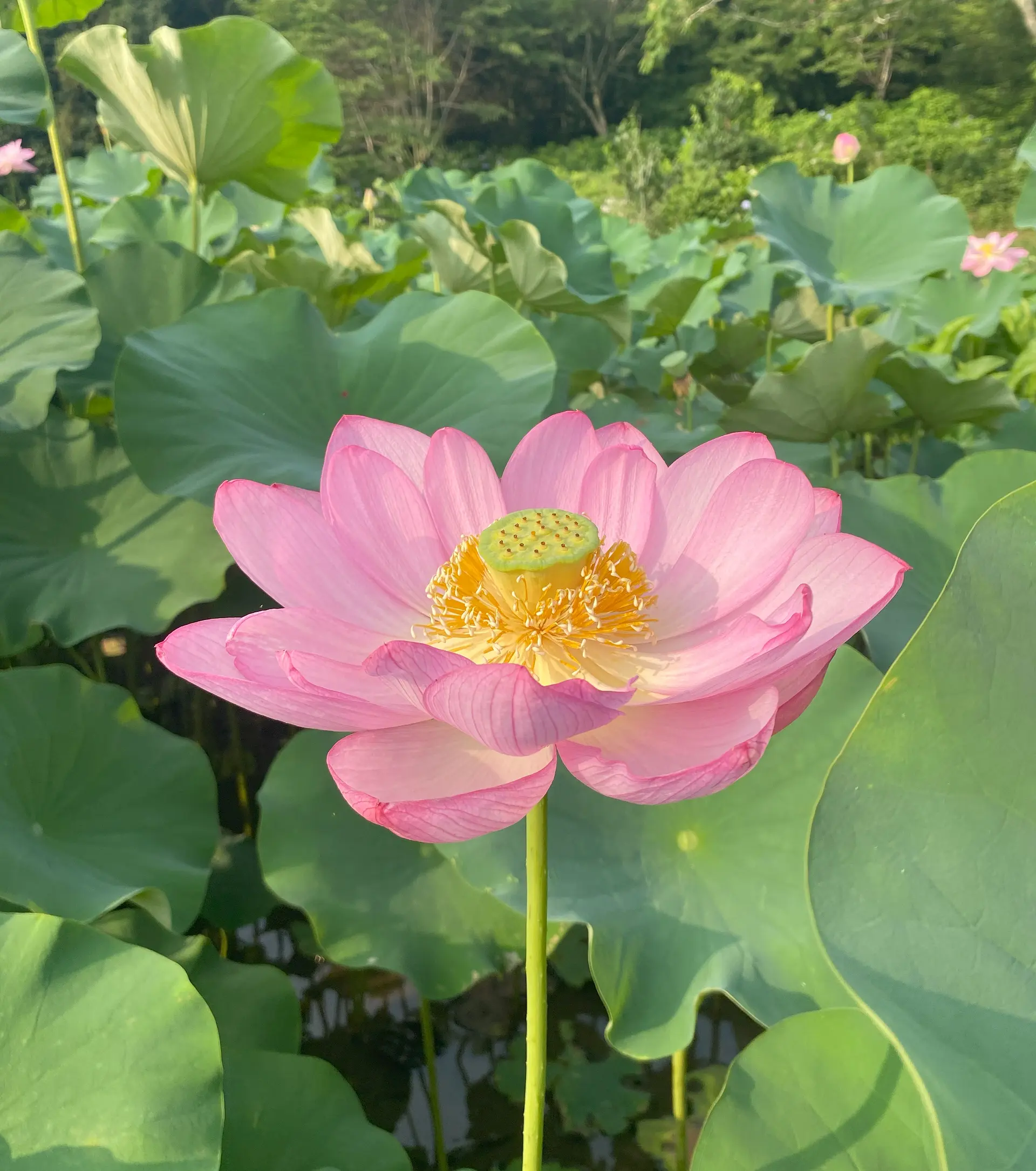 ピンク色の蓮も、入り口すぐのエリアに咲き始めていました。優しいピンク色の蓮の周りには、カメラを構えた人たちが撮影の順番待ちしていました🪷