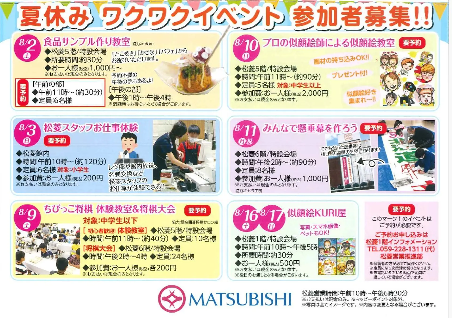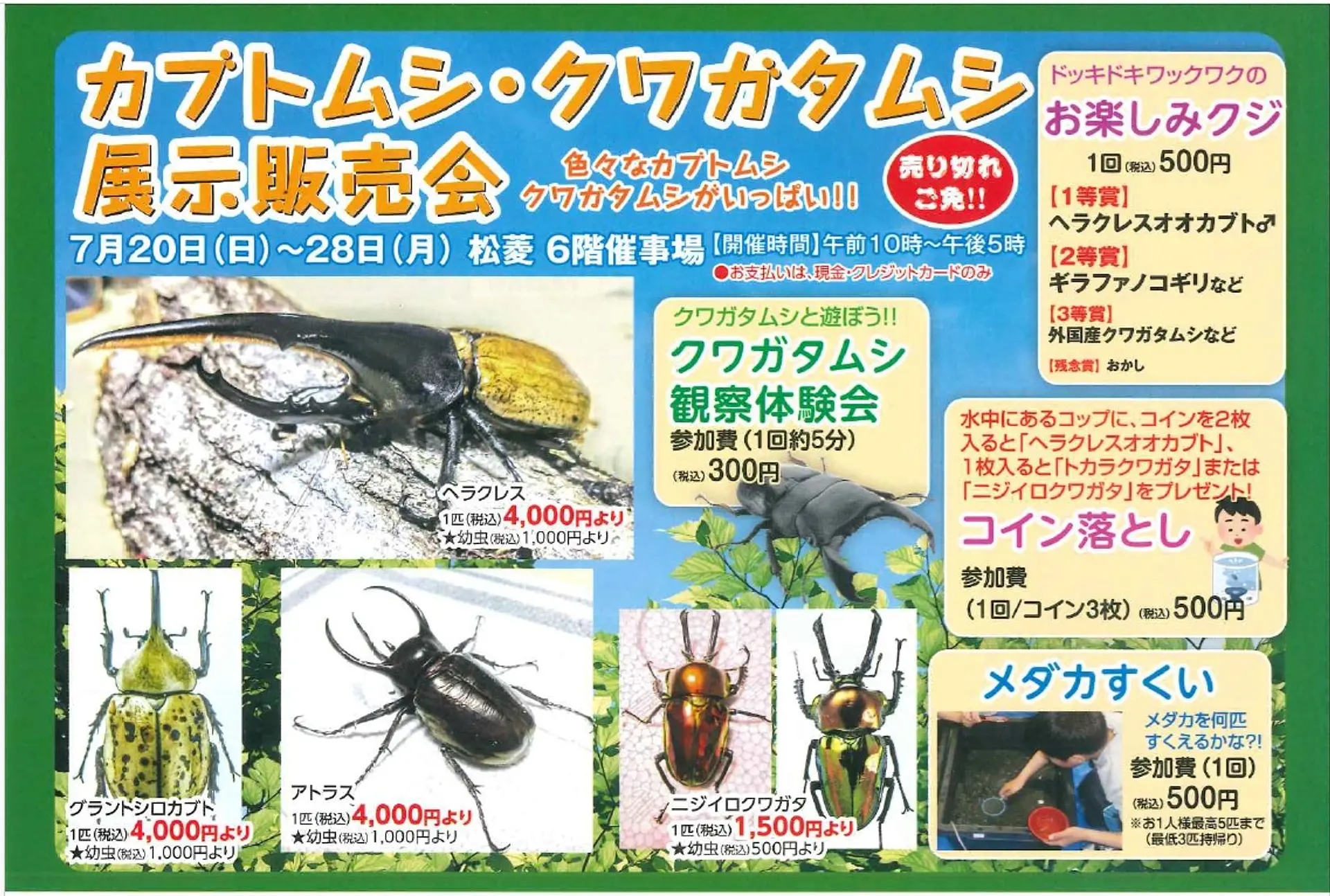 松菱の夏休み企画(カブトムシ・クワガタ展示即売会&夏休みワークショップ)(津市)