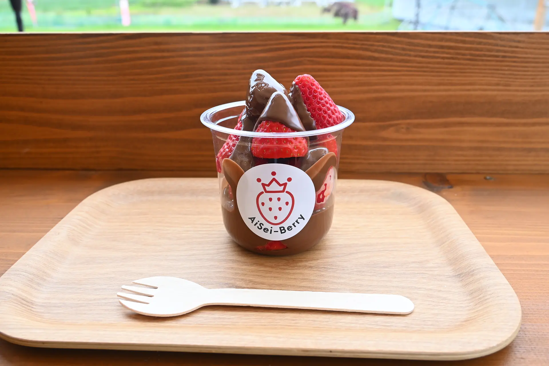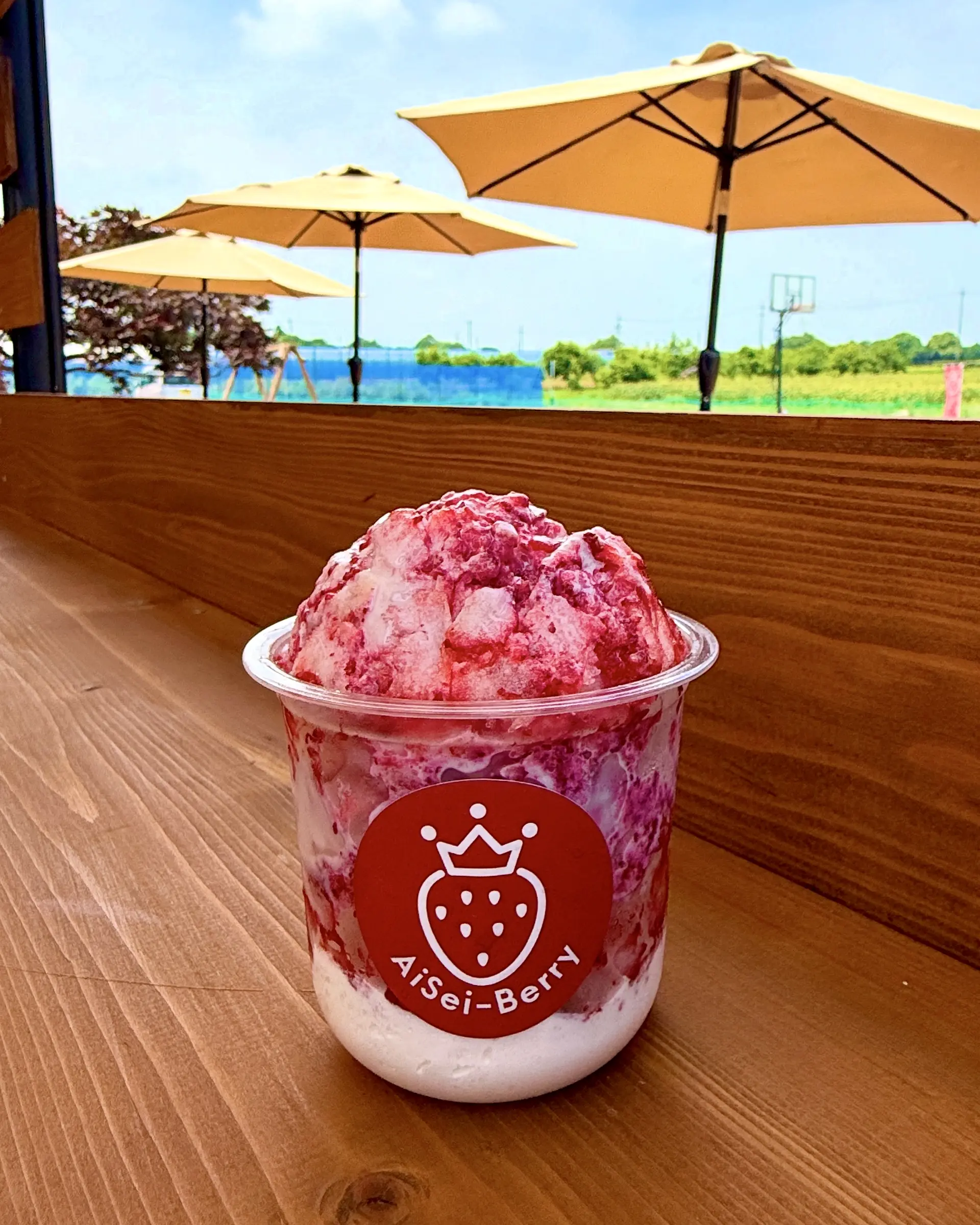いちごを生かした絶品スイーツ。夏はいちごおり、冬はいちごチョコです。いちご農園だからできるいちごをふんだんに使ったメニューです。この2つを食べずに愛成ベリーは語れない絶品看板メニューです。どちらも期間限定で、いちごおりはいちご狩りのオフシーズン。いちごチョコはいちご狩りができるシーズンを中心に食べられます。